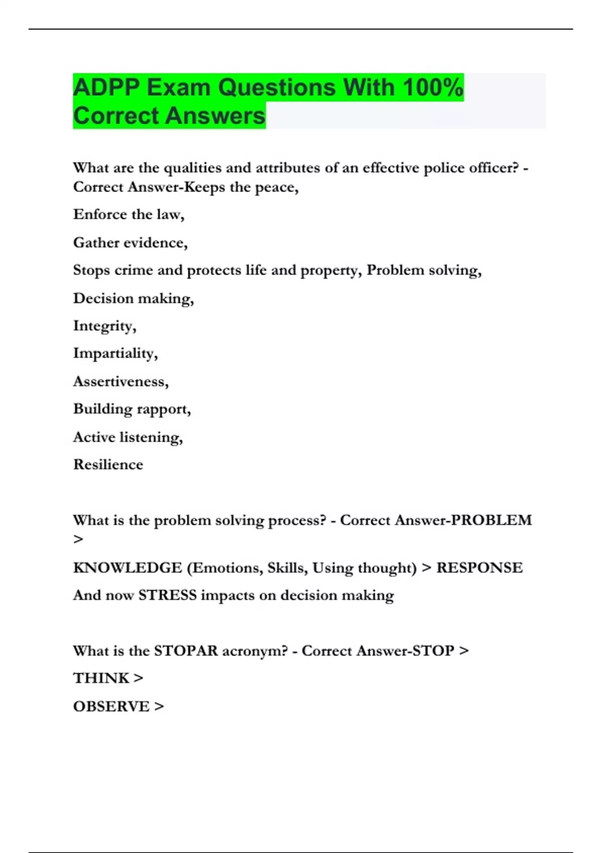 Stops crime and protects life and property, Problem solving,