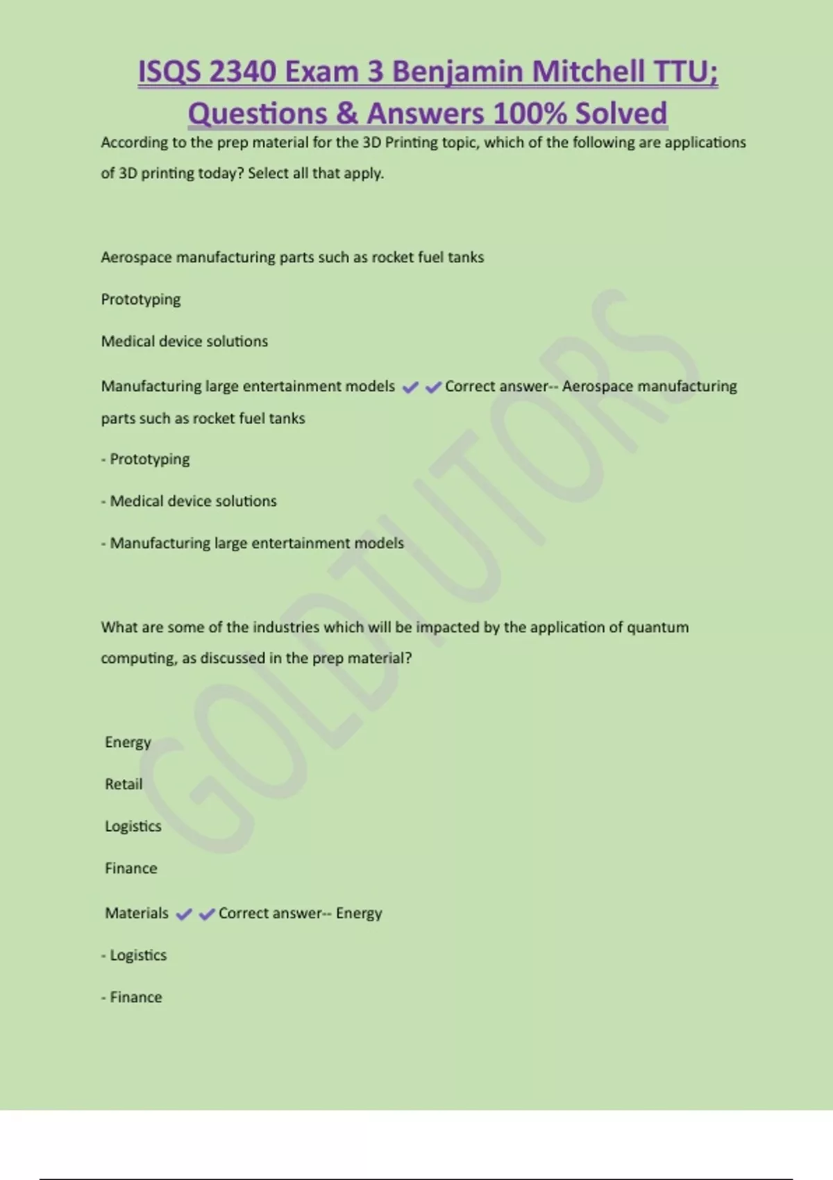 Questions & Answers 100% Solved