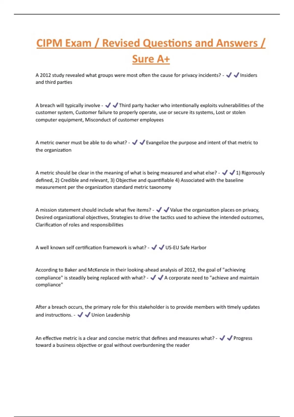 maintained in the process, 6) Advocate the metric to customers, partners and others, 7) Maintain