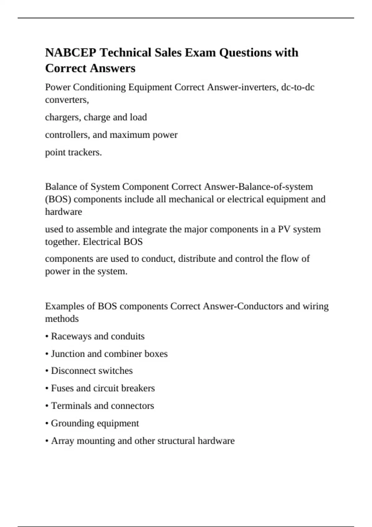 NABCEP Technical Sales Exam Questions with Correct Answers