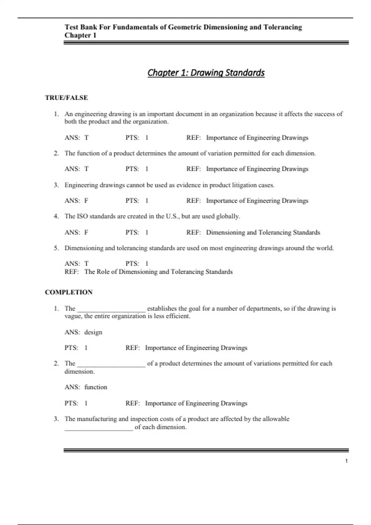 , Test Bank For Fundamentals of Geometric Dimensioning and Tolerancing