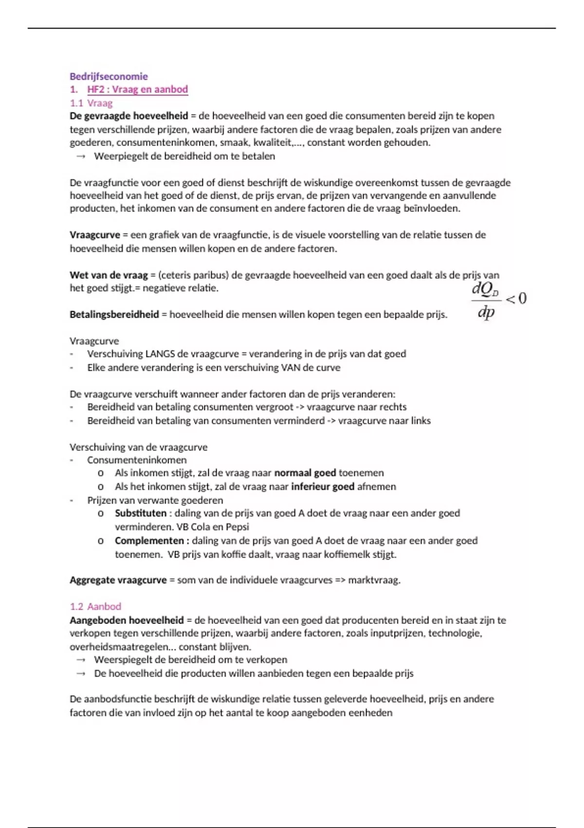 Wet van de vraag = (ceteris paribus) de gevraagde hoeveelheid van een goed daalt als de prijs van