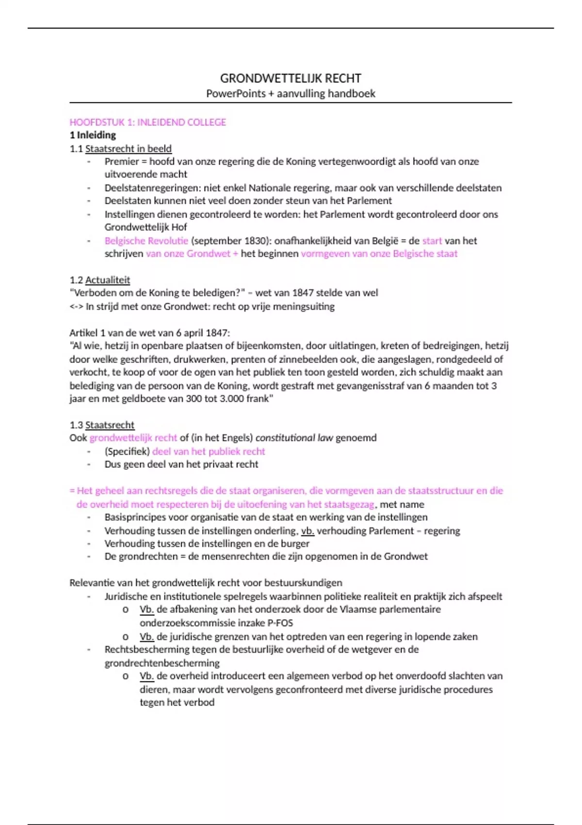 - De materiële grondwet: aanvulling op de formele Grondwet
