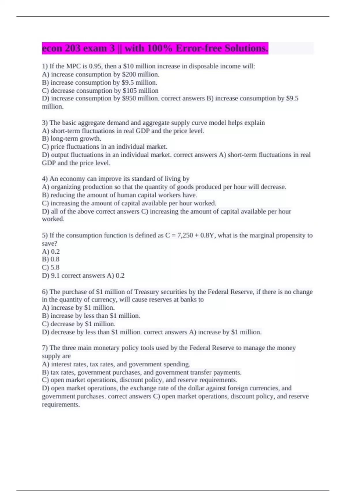 D) decrease by less than $1 million. correct answers A) increase by $1 million.