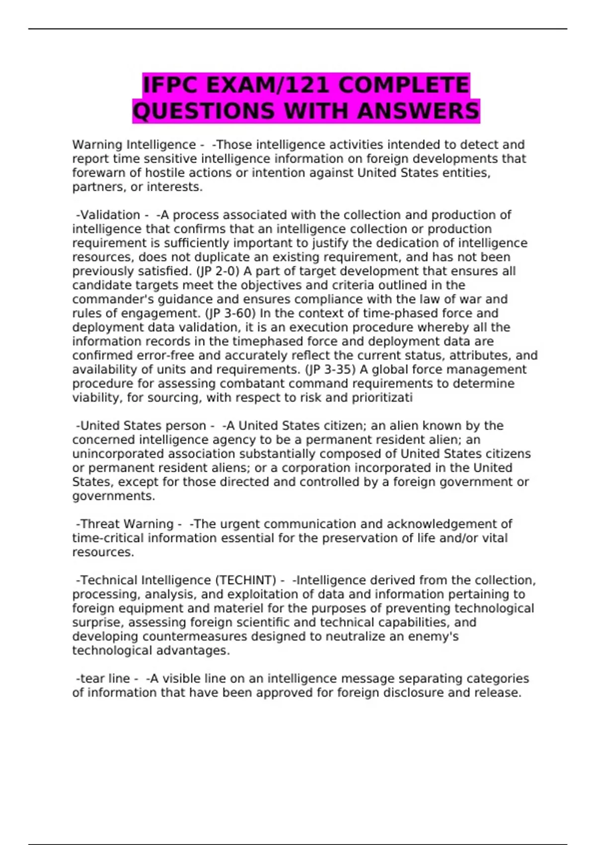 IFPC EXAM/121 COMPLETE