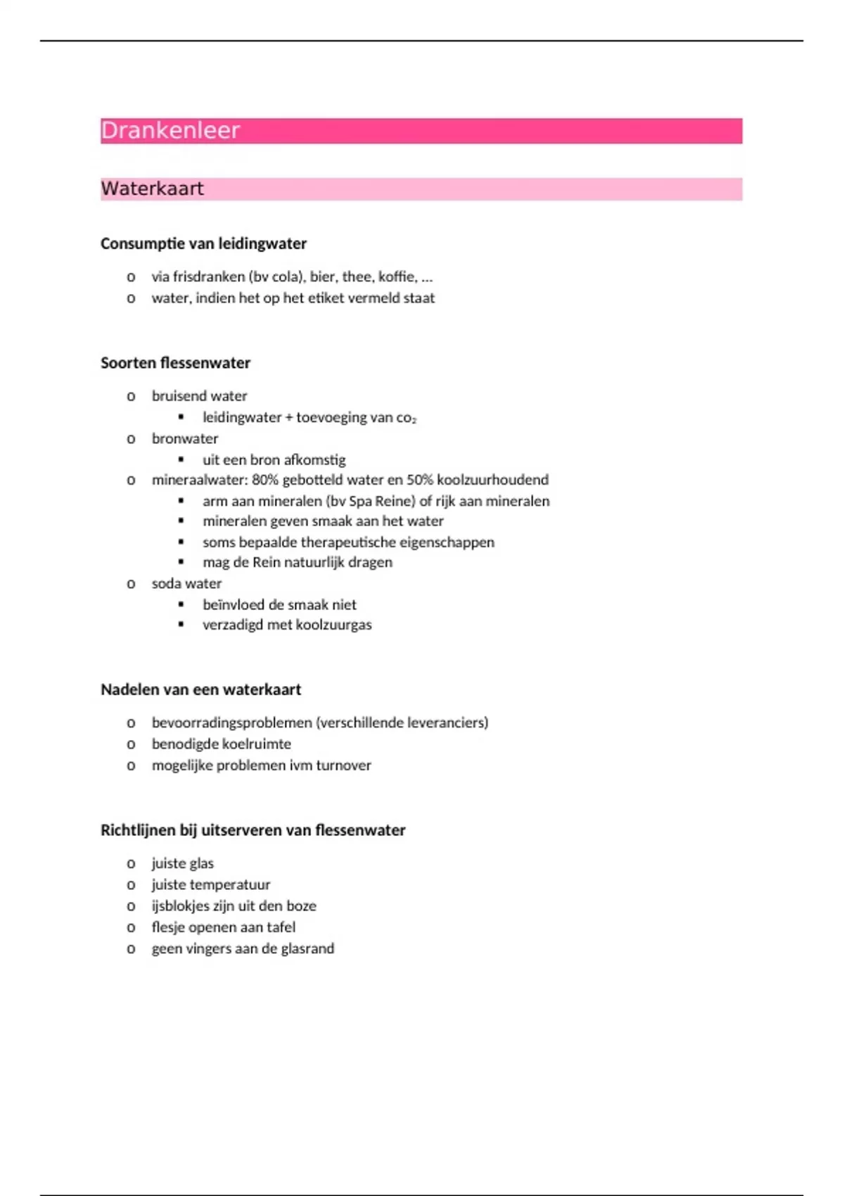 o mineraalwater: 80% gebotteld water en 50% koolzuurhoudend