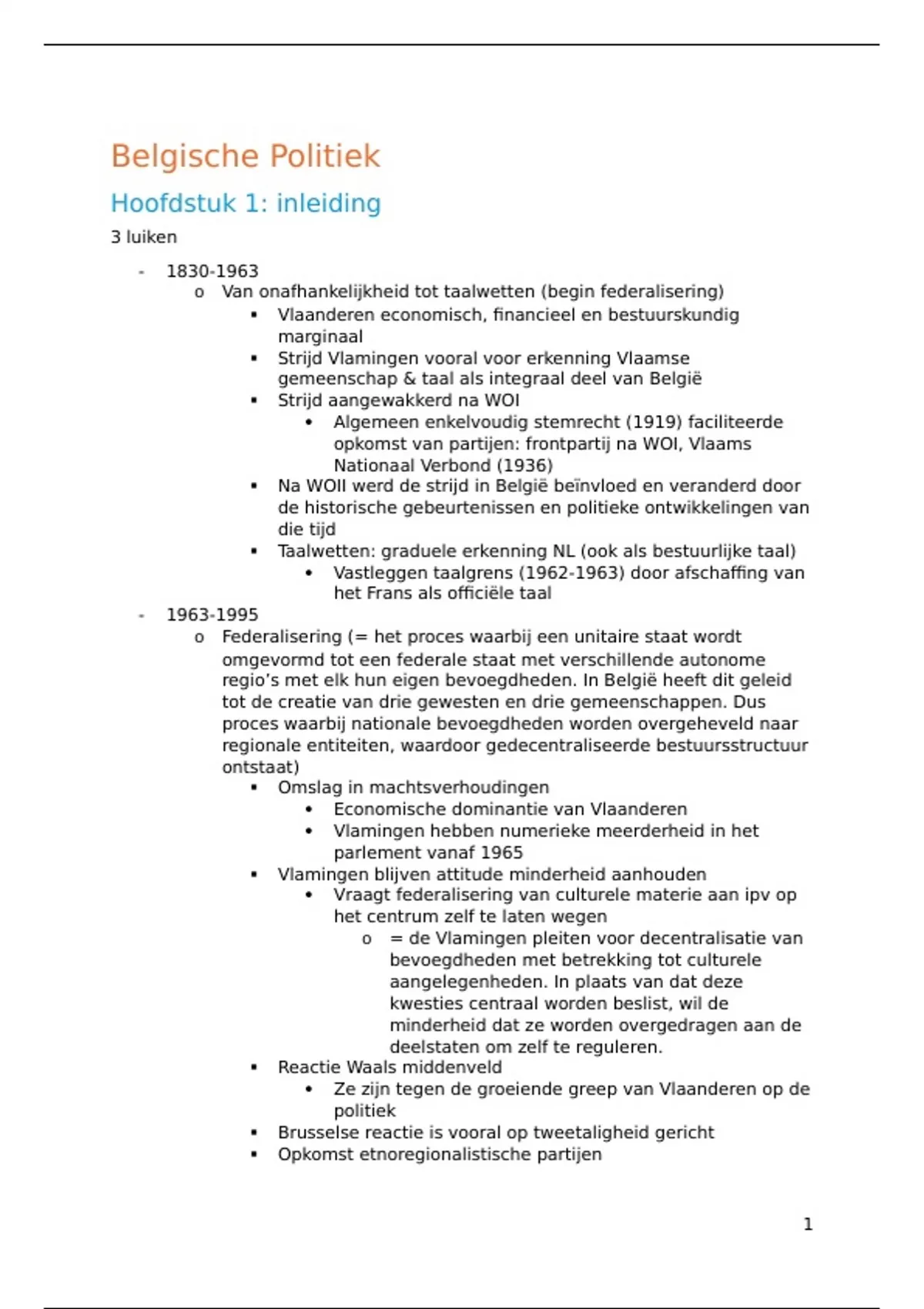 o Van onafhankelijkheid tot taalwetten (begin federalisering)