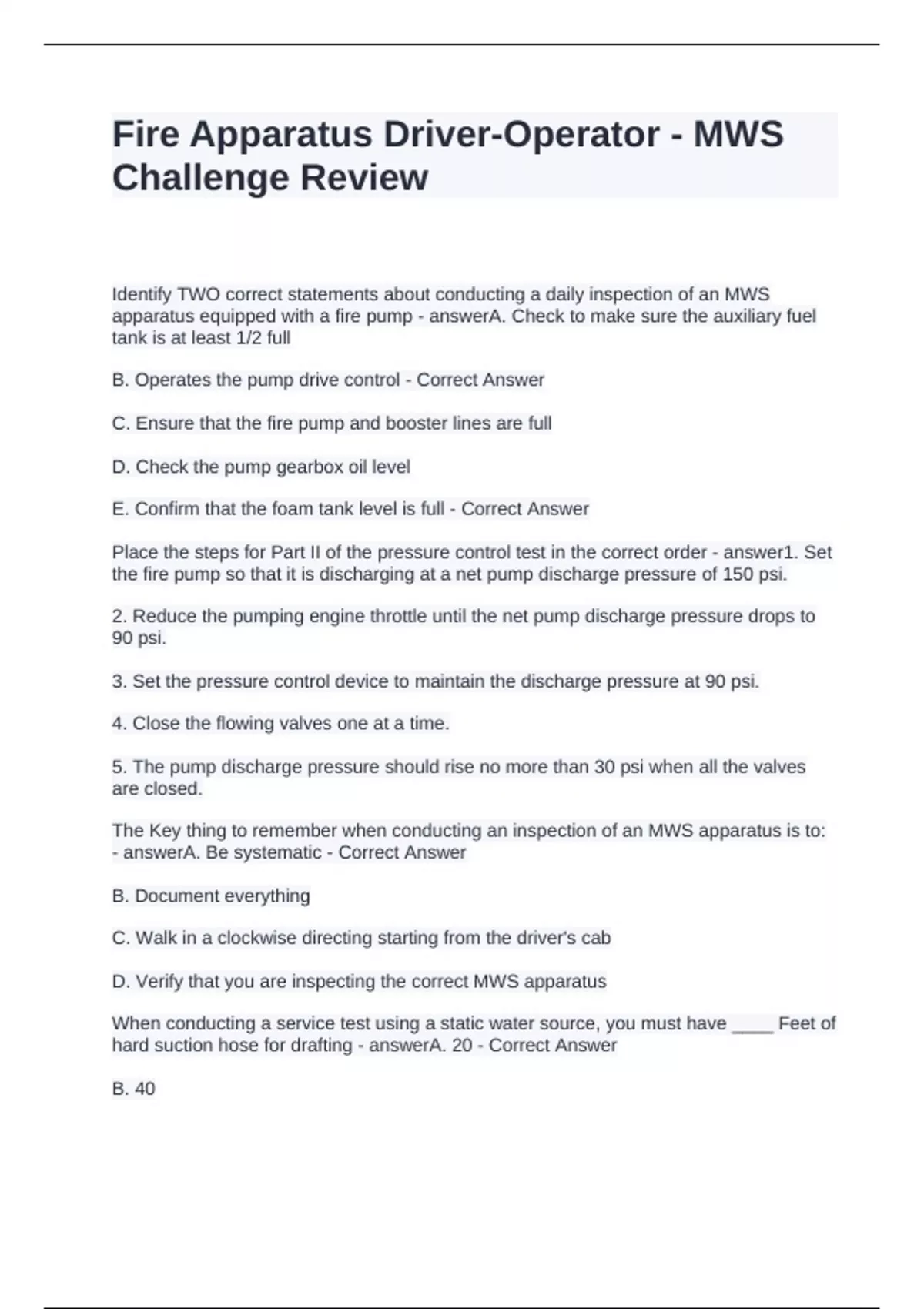 apparatus equipped with a fire pump - answerA. Check to make sure the auxiliary fuel