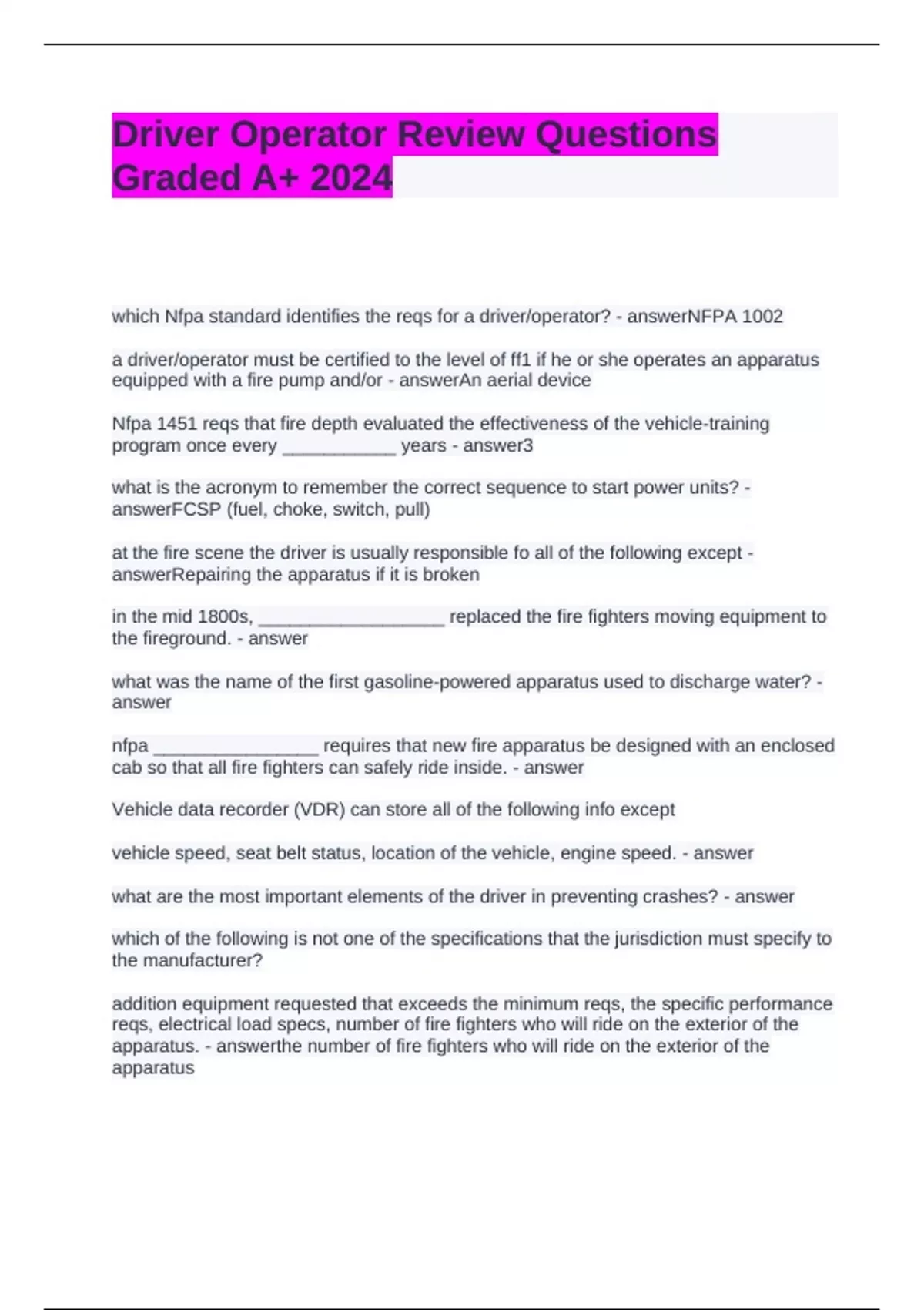 which Nfpa standard identifies the reqs for a driver/operator? - answerNFPA 1002