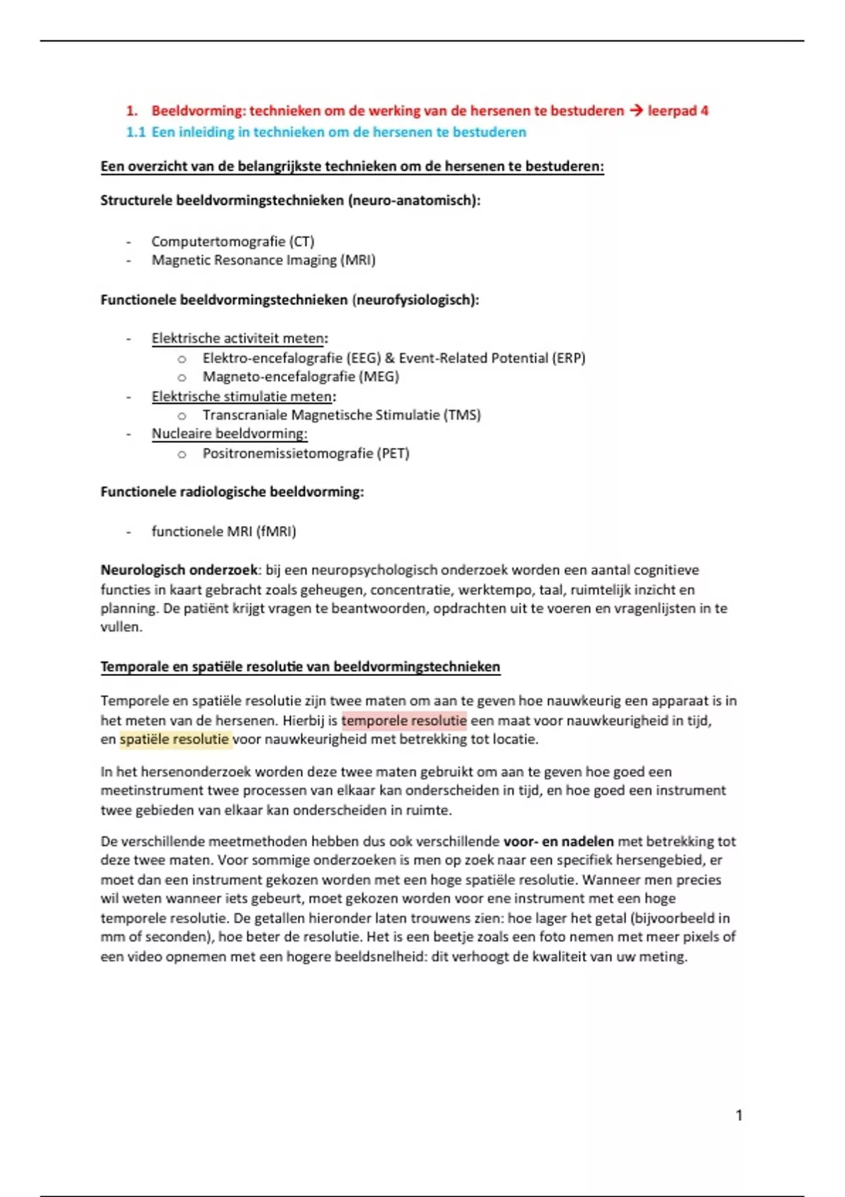 1. Beeldvorming: technieken om de werking van de hersenen te bestuderen → leerpad 4