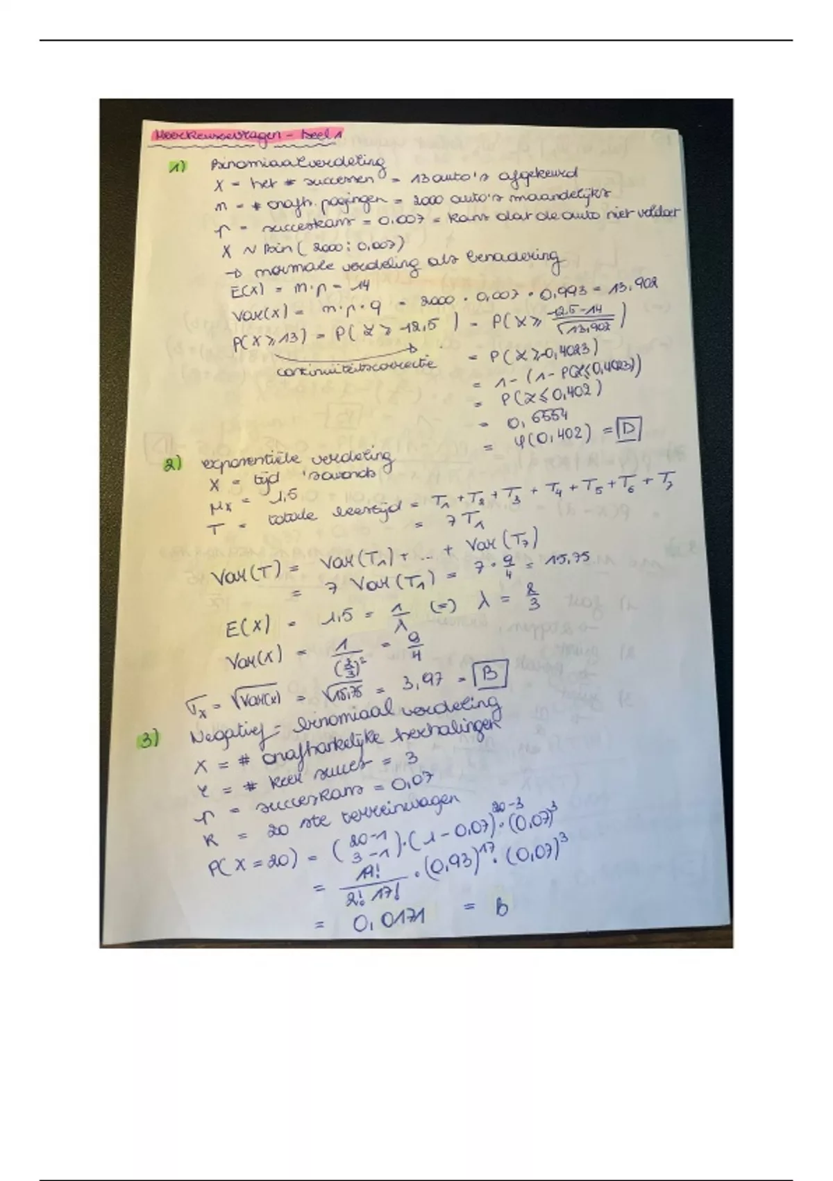 Oplossingen van beide Voorbeeldexamens (Oefentoets 1 en 2) - BEDRIJFSSTATISTIEK -