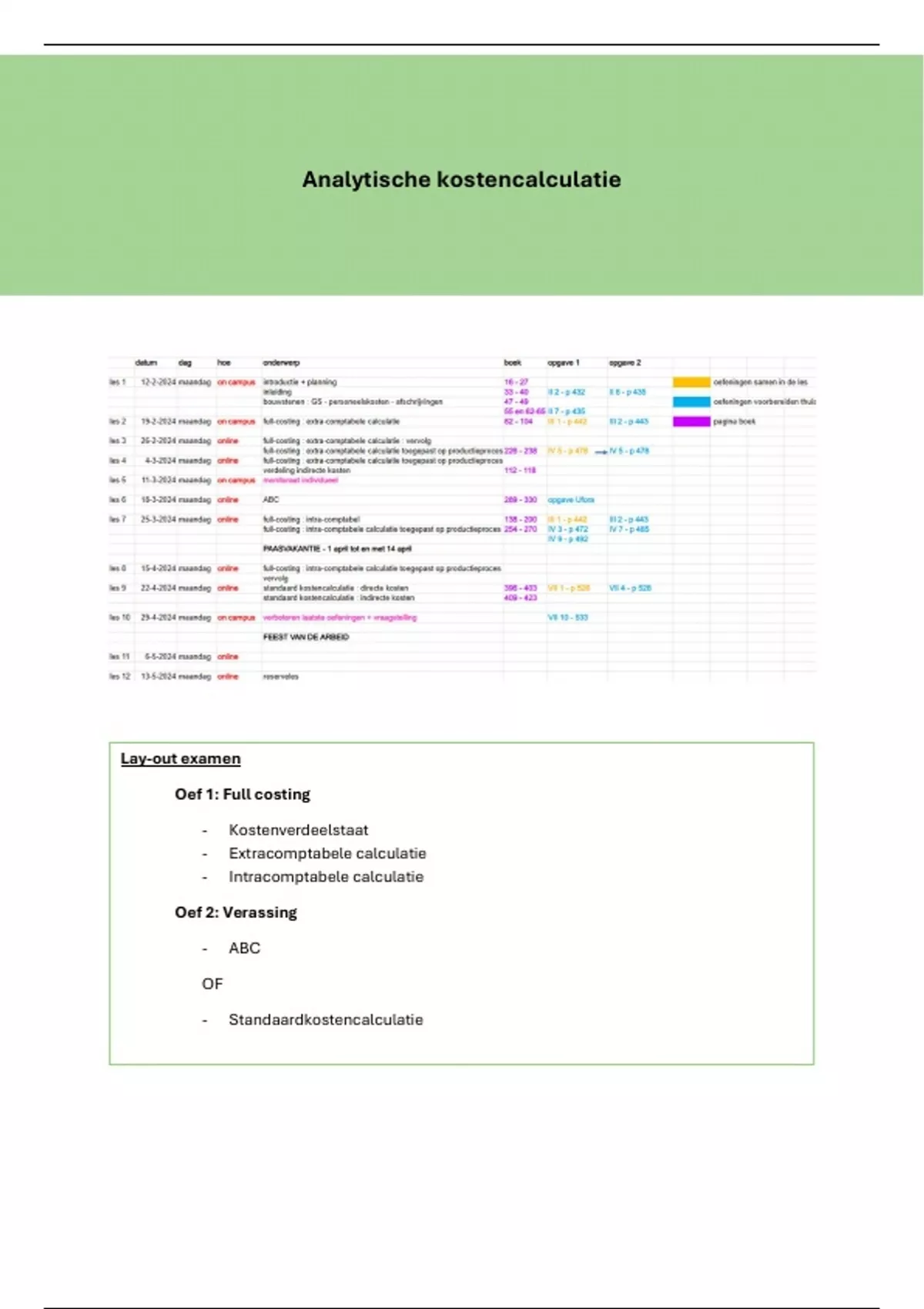 - analytische kostencalculatie = gericht op kosten en opbrengsten (6 en 7) = niet louter