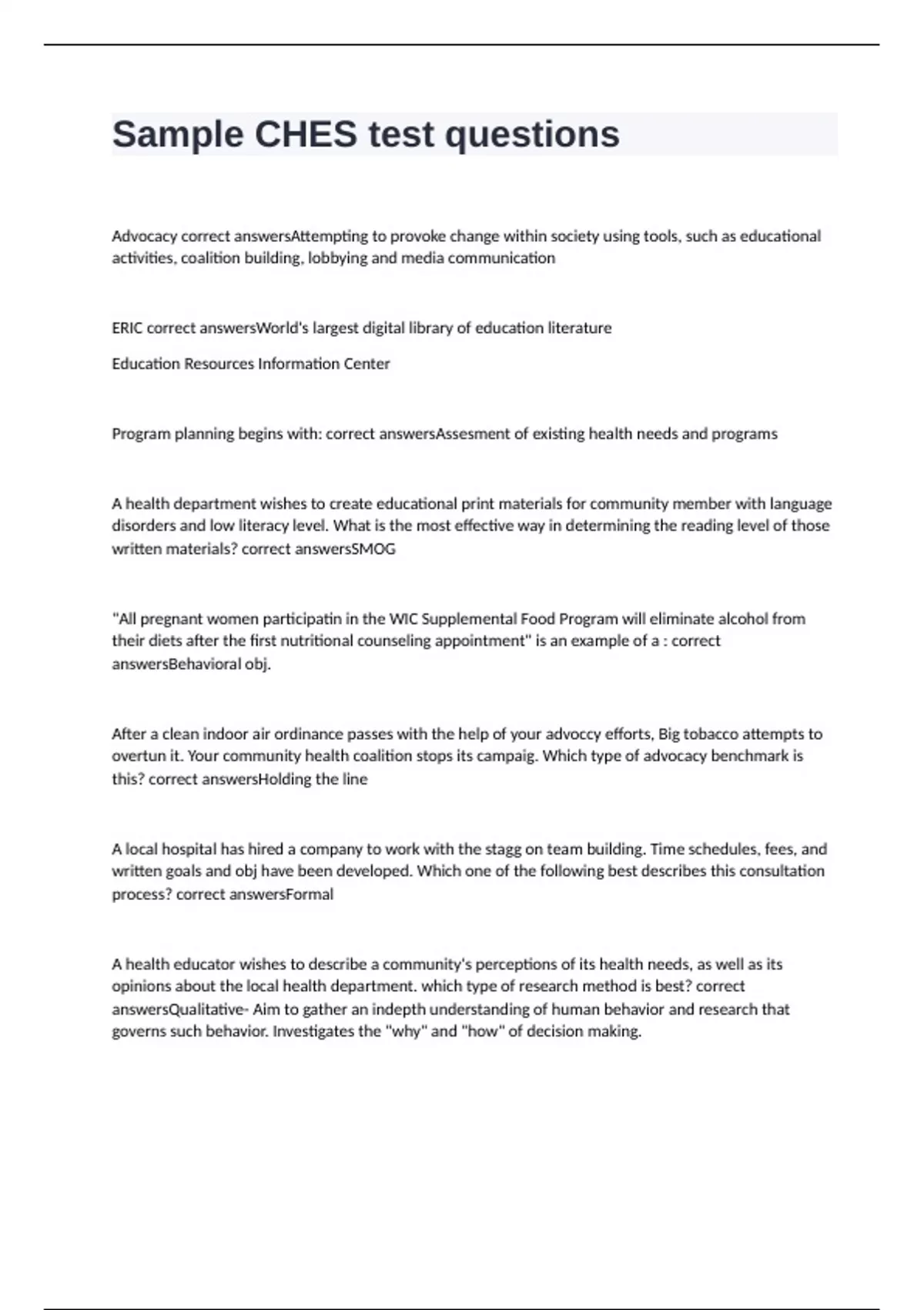 Sample CHES test questions & answers 100% correct 2024