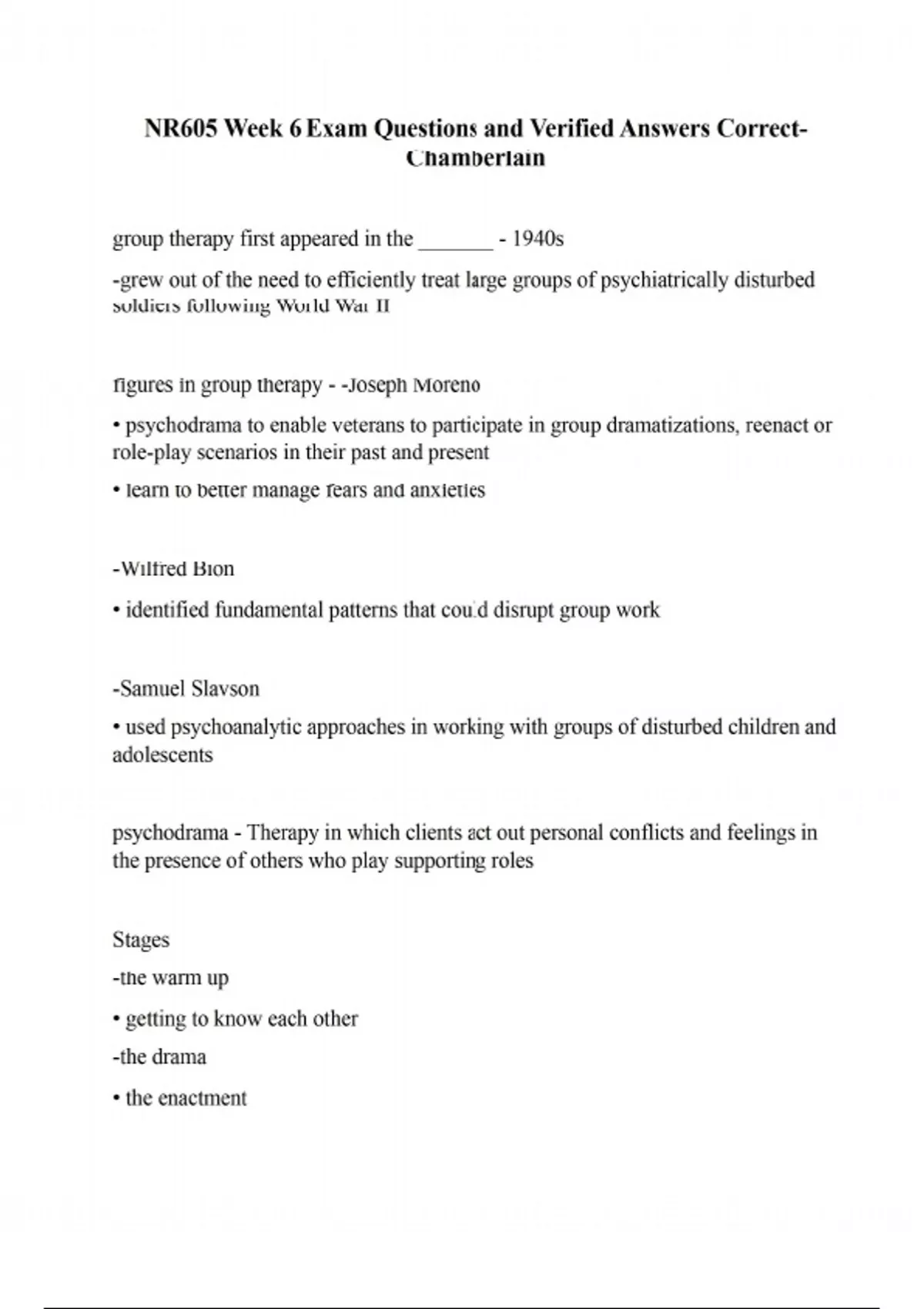 NR605 Week 6 Exam Questions and Verified Answers Correct- Chamberlain