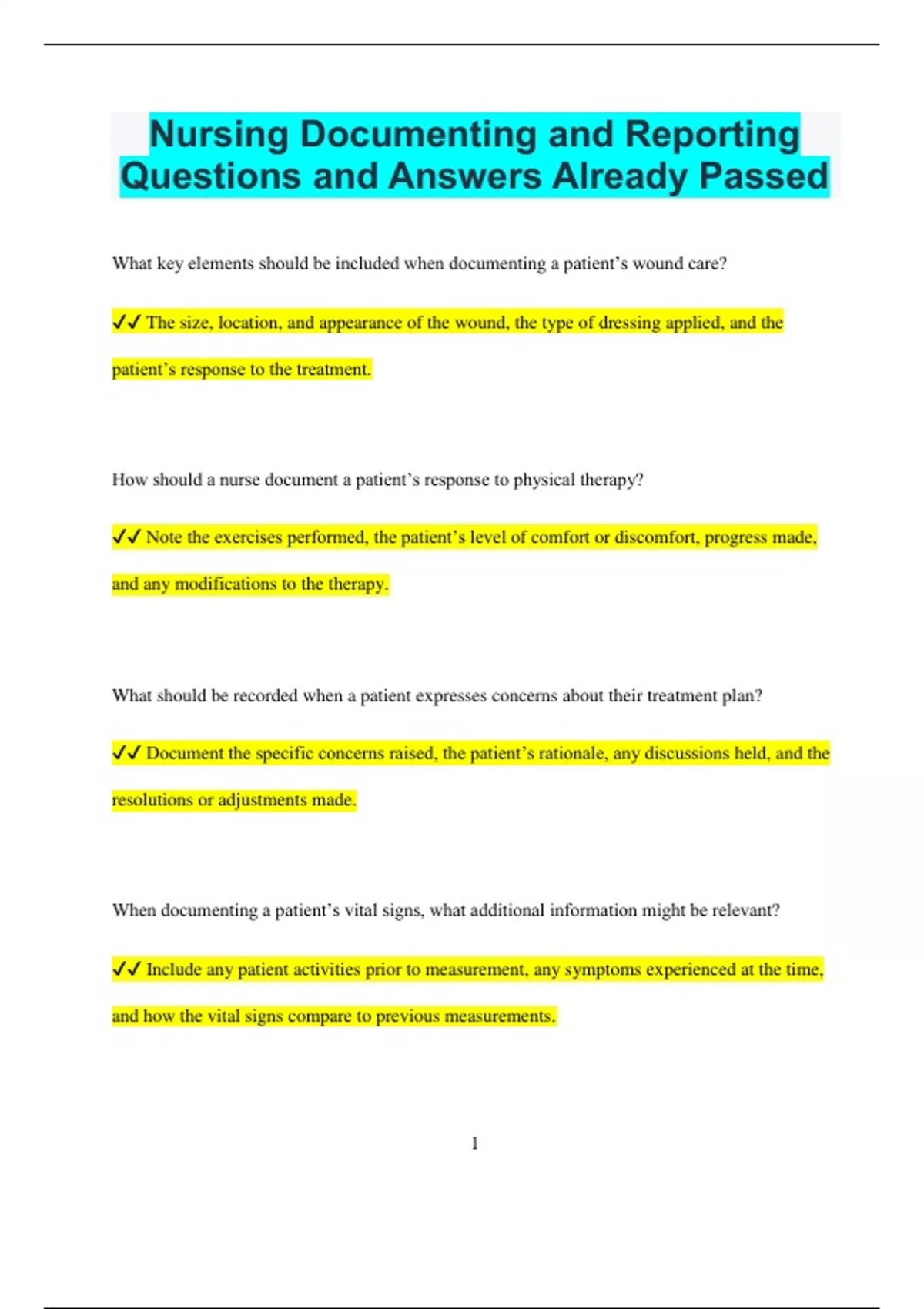 Nursing Documenting and Reporting Questions and Answers Already Passed