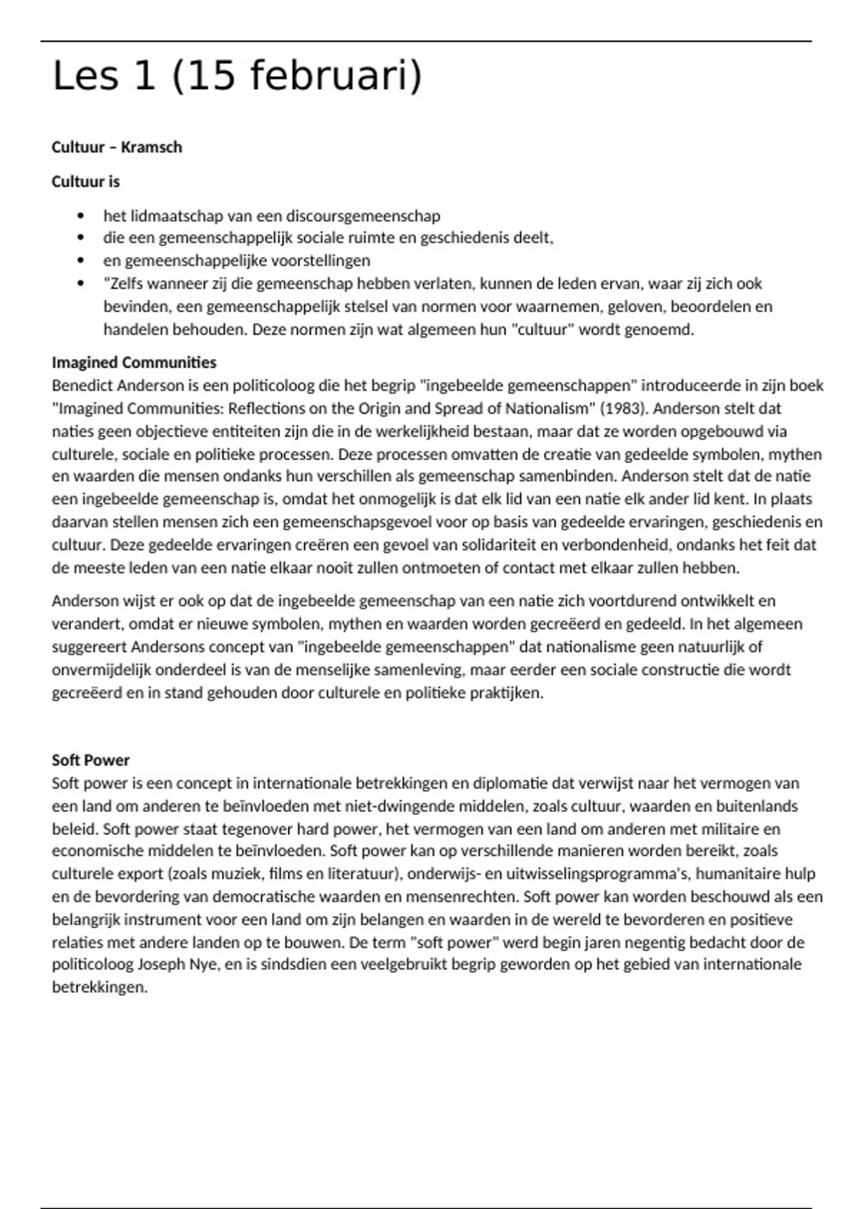 en waarden die mensen ondanks hun verschillen als gemeenschap samenbinden. Anderson stelt dat de natie