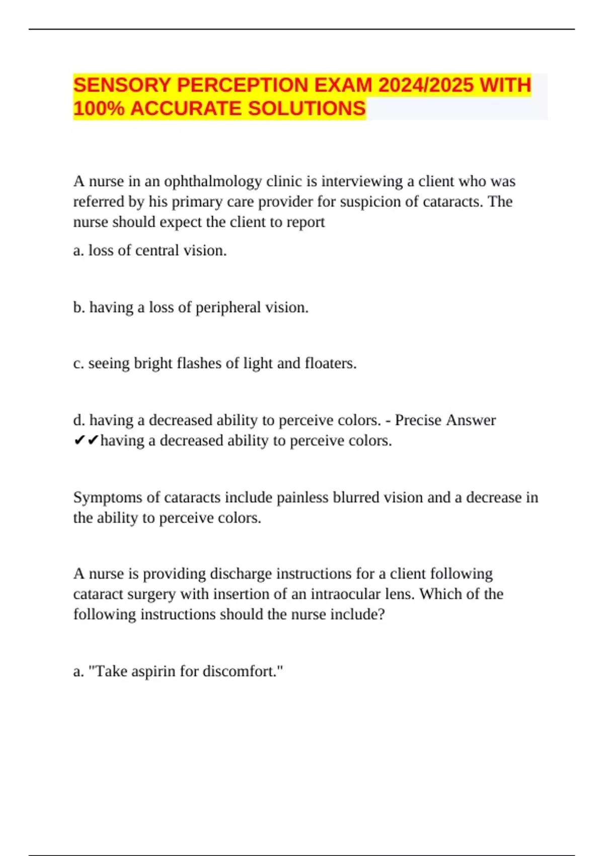 SENSORY PERCEPTION EXAM 2024/2025 WITH