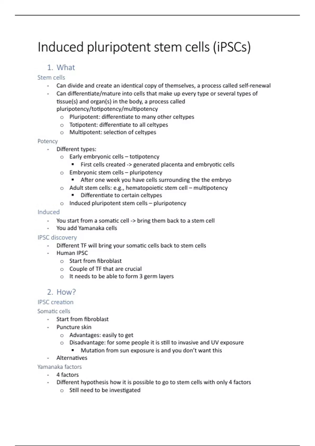 o Induced pluripotent stem cells – pluripotency
