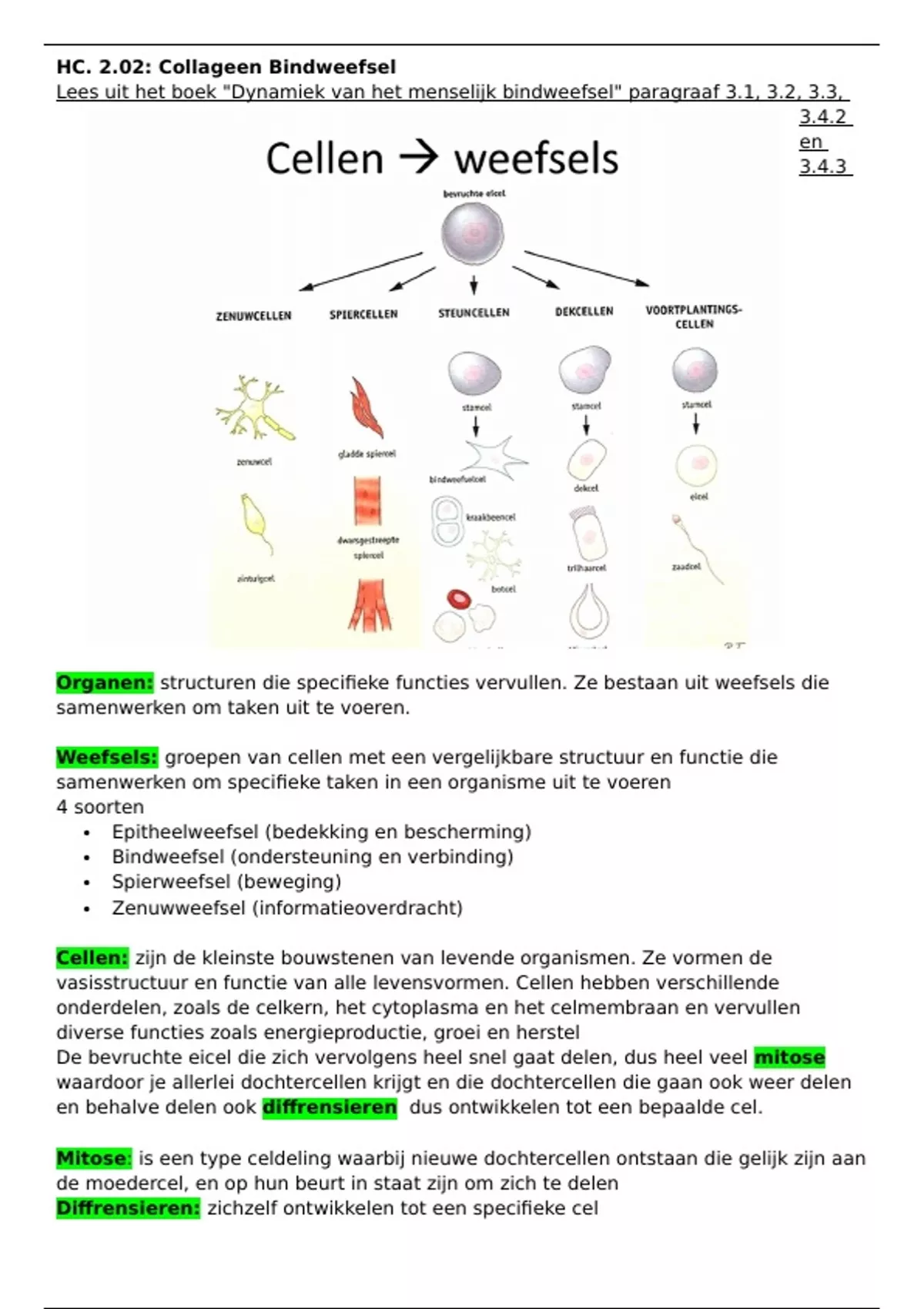Lees uit het boek "Dynamiek van het menselijk bindweefsel" paragraaf 3.1, 3.2, 3.3,