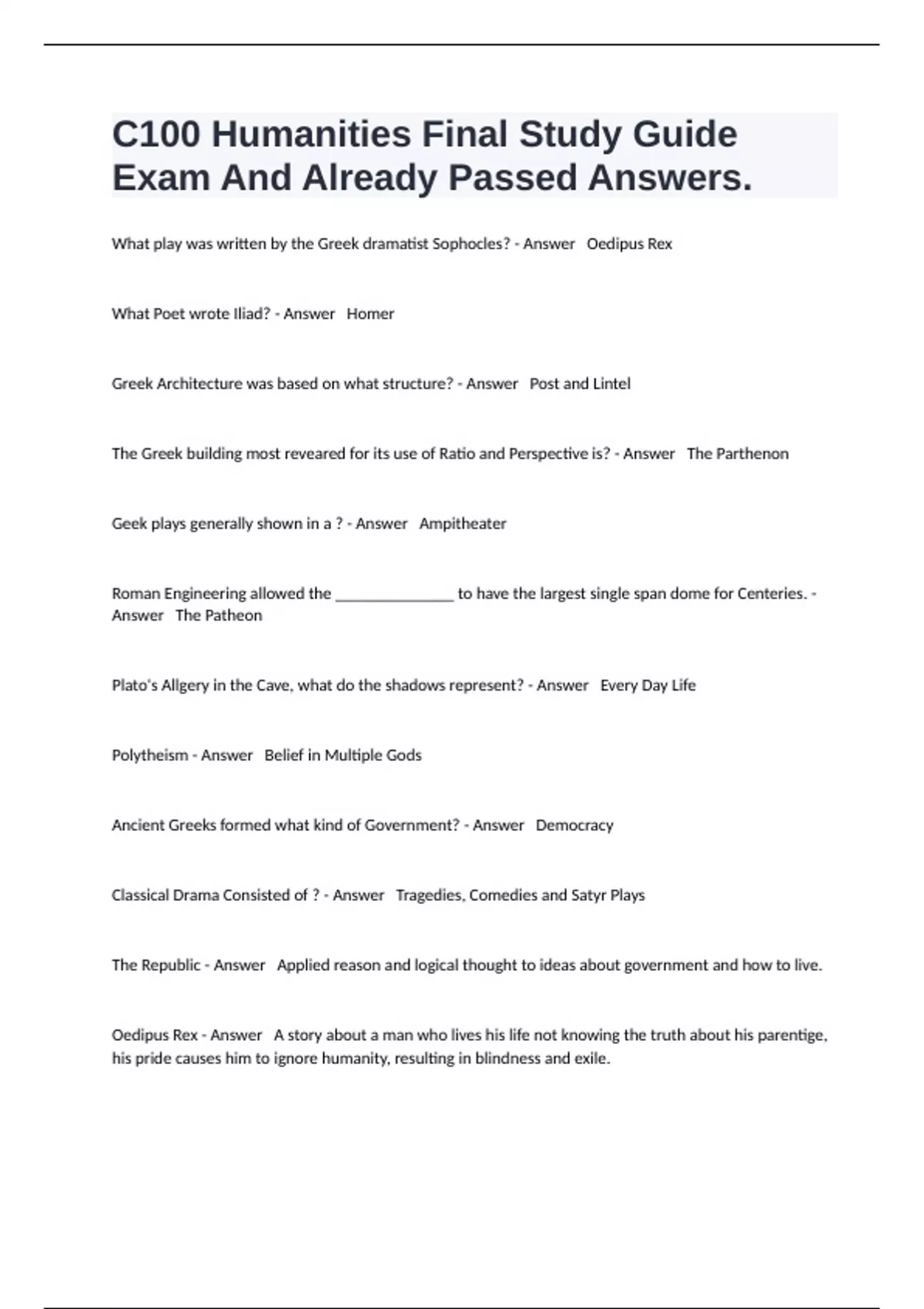 What play was written by the Greek dramatist Sophocles? - Answer Oedipus Rex