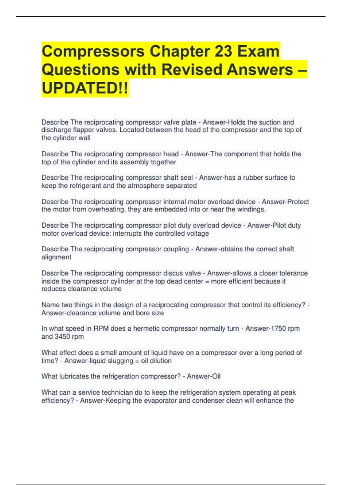 Describe The reciprocating compressor head - Answer-The component that holds the