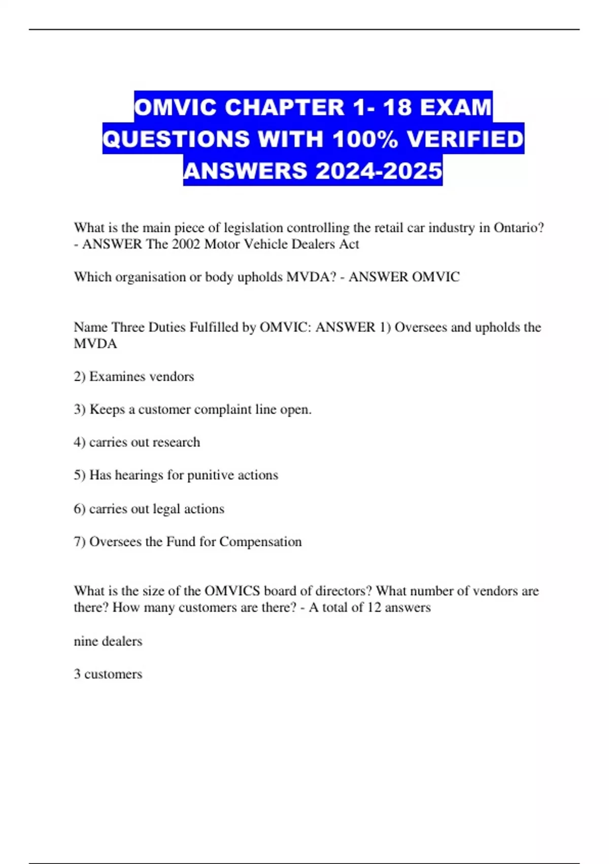 Name Three Duties Fulfilled by OMVIC: ANSWER 1) Oversees and upholds the