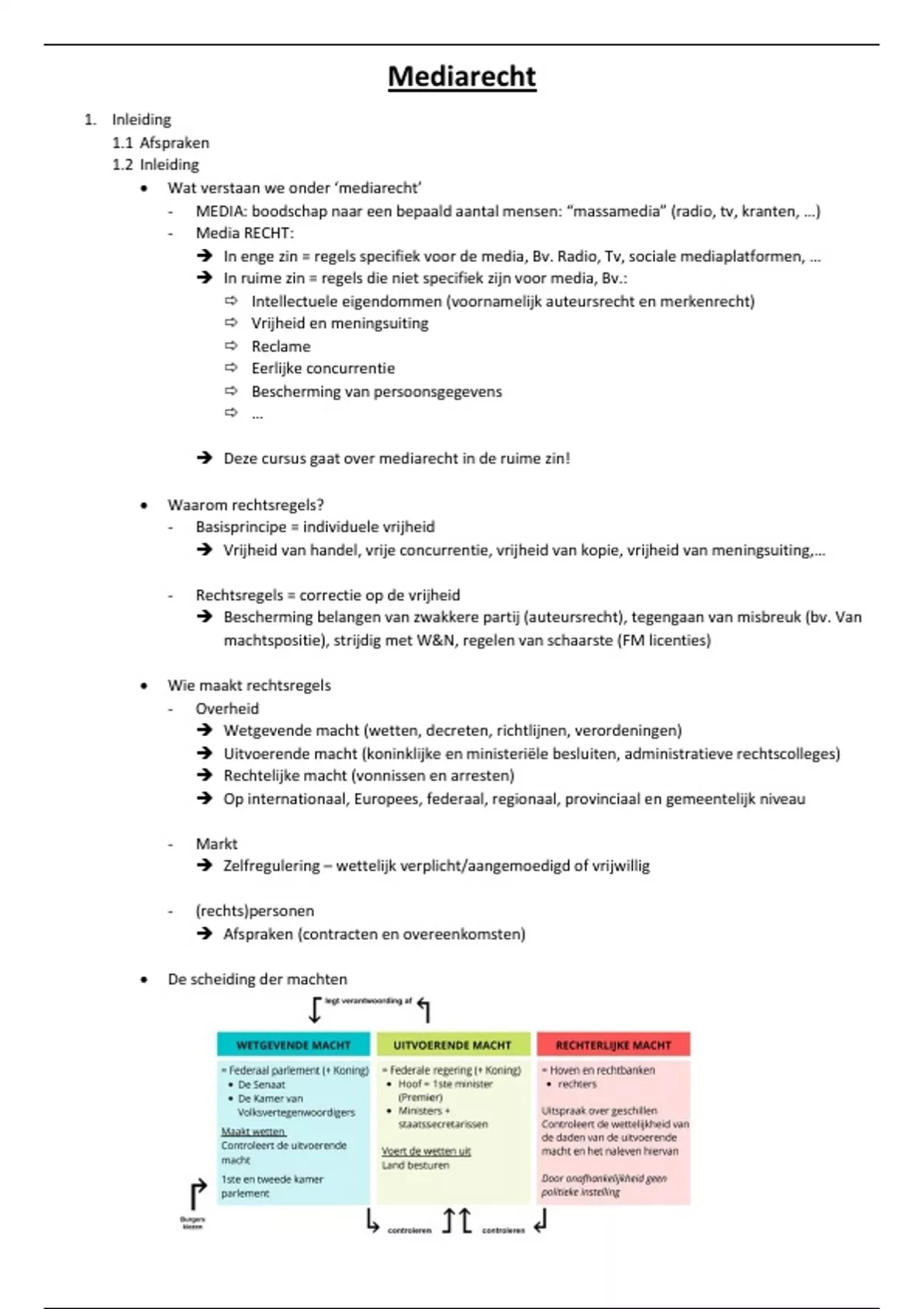 Volledige samenvatting van het vak mediarecht. Bevat theoretische kennis uit de slides, hoorcolleges en aanvullende notities. Met deze samenvatting behaalde ik een 17/20. Let hierbij wel op dat dit enkel de zaken waren die aangegeven waren om te kennen voor het examen in mijn jaar.