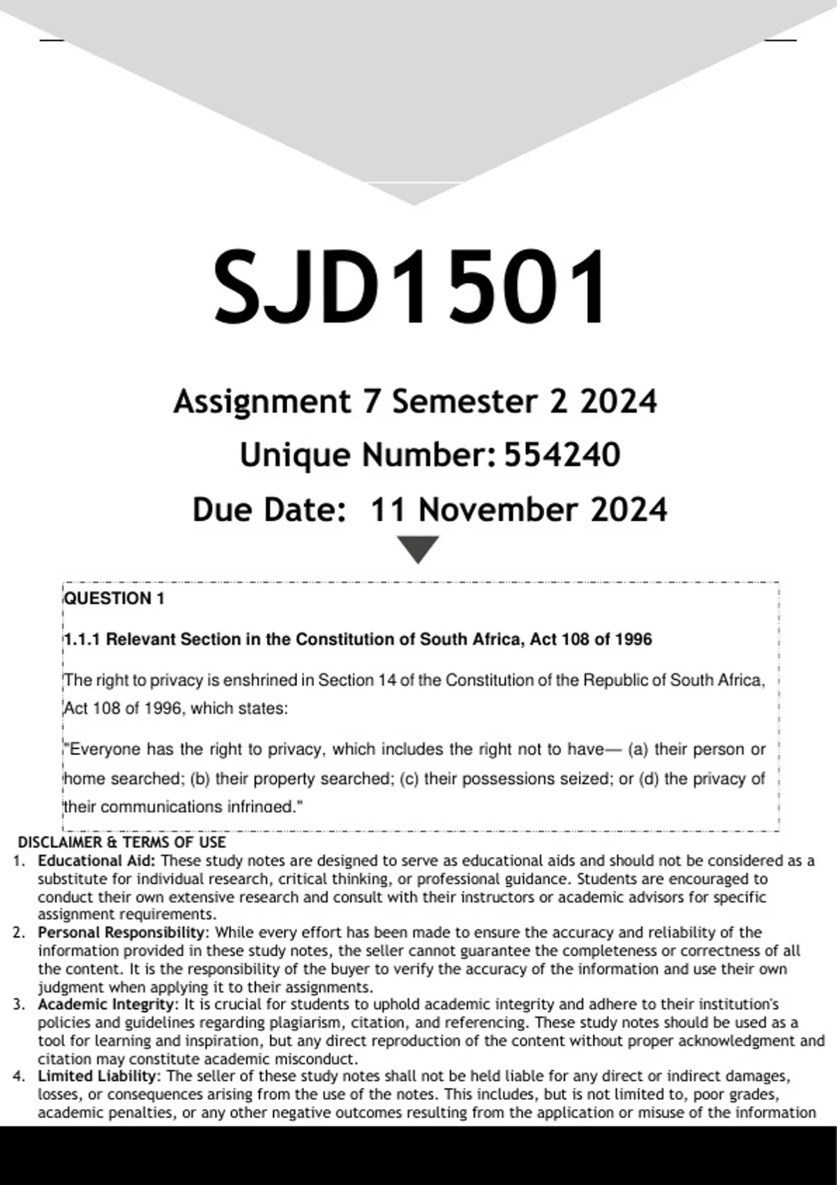 SJD1501 Assignment 7 (ANSWERS) Semester 2 2024 - DISTINCTION GUARANTEED