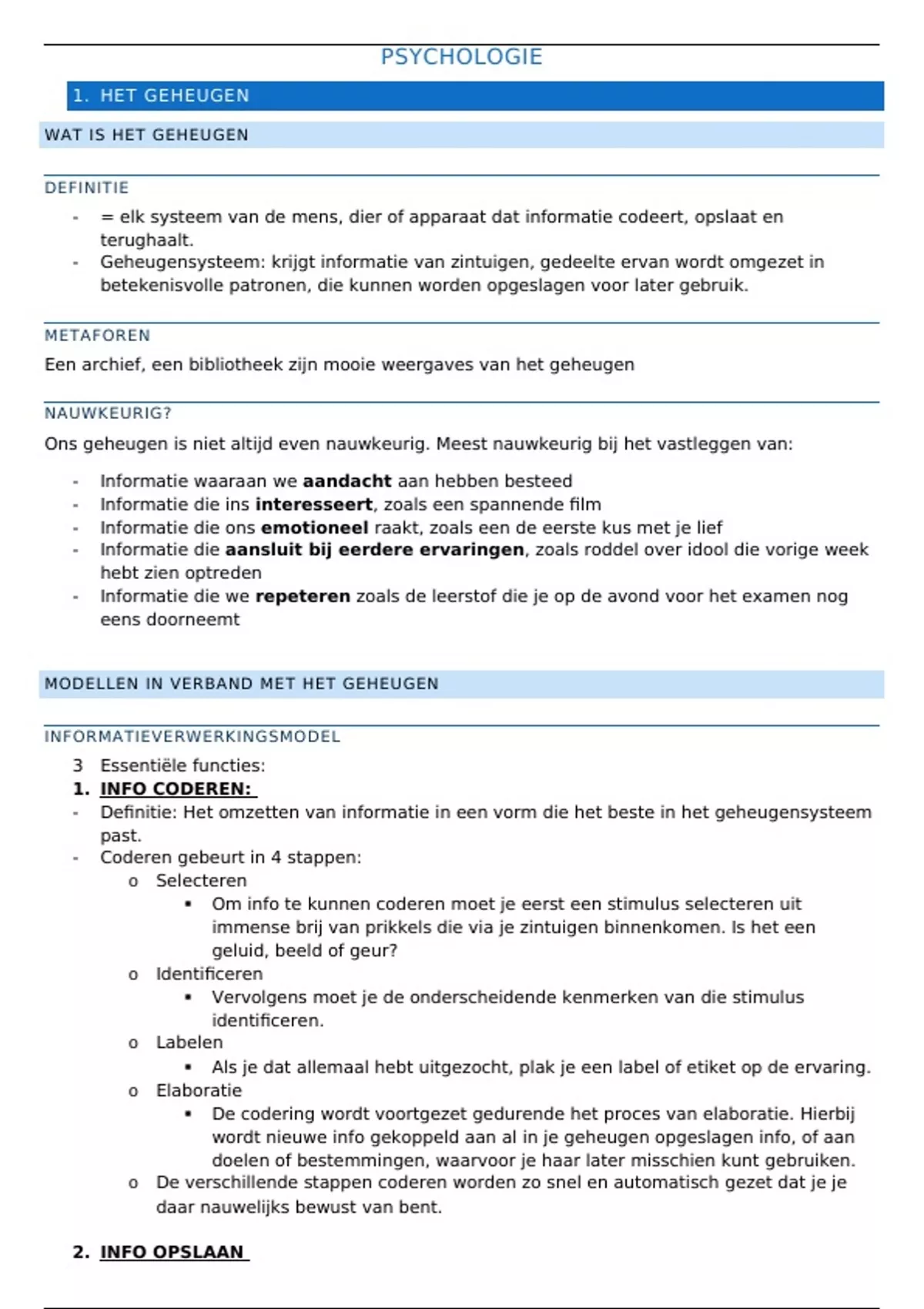 - Geheugensysteem: krijgt informatie van zintuigen, gedeelte ervan wordt omgezet in