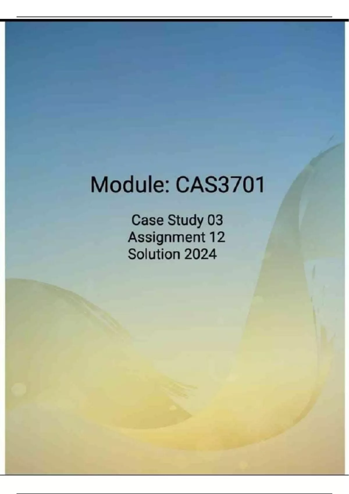 THIS DOCUMENT CONSISTS OF CAS3701 ASSIGNMENT 12 CASE STUDY 03 SOLUTION THAT IS DUE 04 OCTOBER 2024, ITS A GUARANTEED 100% PASS MARK.