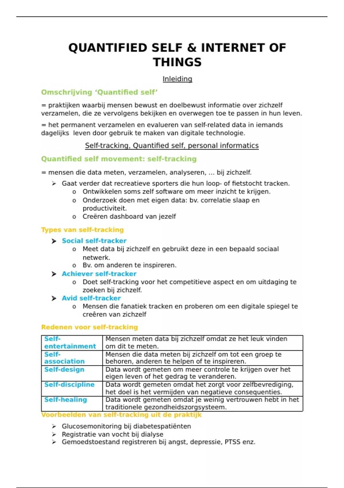 Beknopte samenvatting rond quantified self & internet of things.