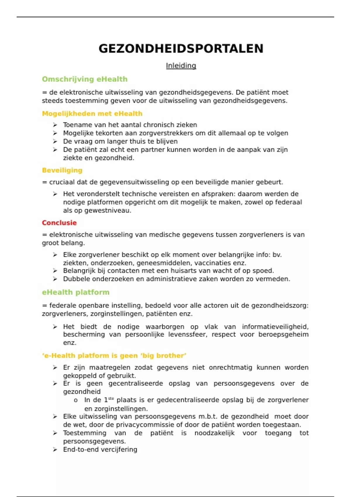Samenvatting van het zelfstudiepakket rond gezondheidsportalen.