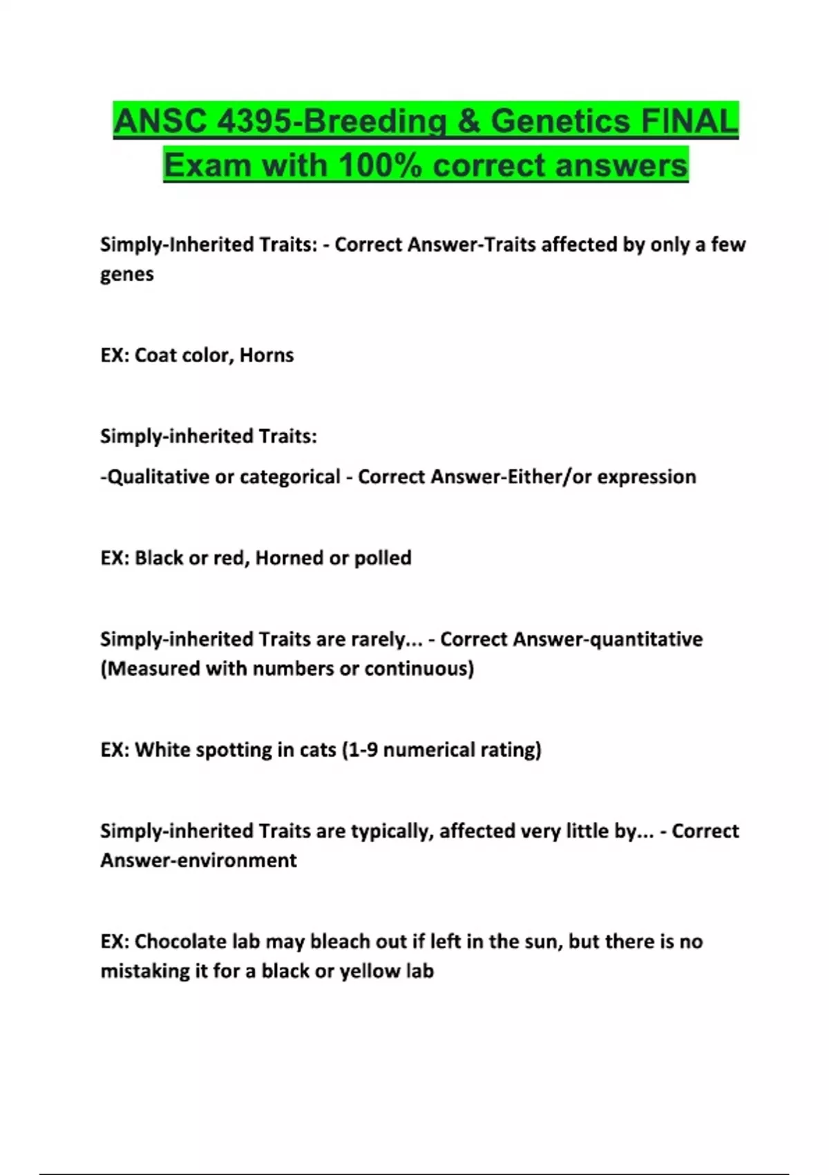 ANSC 4395-Breeding & Genetics FINAL Exam With 100% Correct Answers 2024