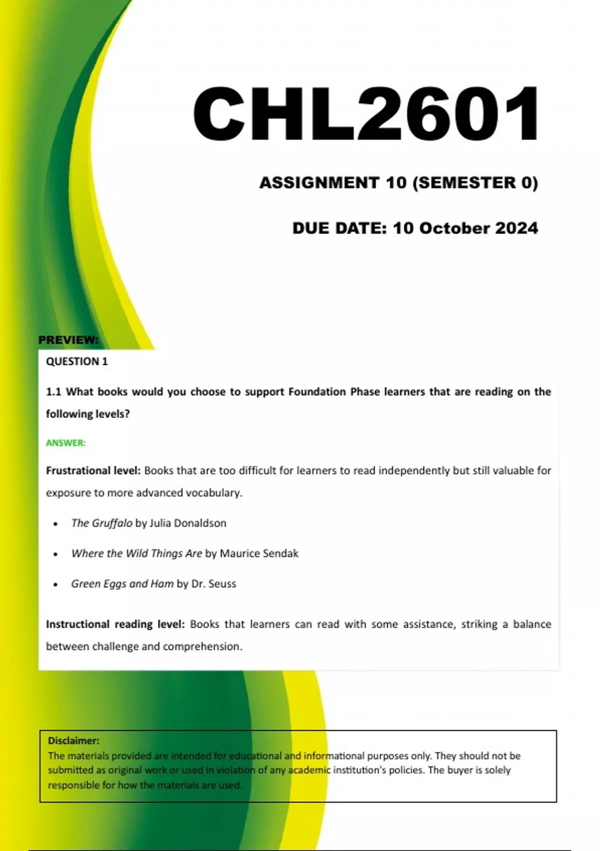 CHL2601 Assignment 10 (DETAILED ANSWERS) 2024 (183772) - DUE 10 October 2024