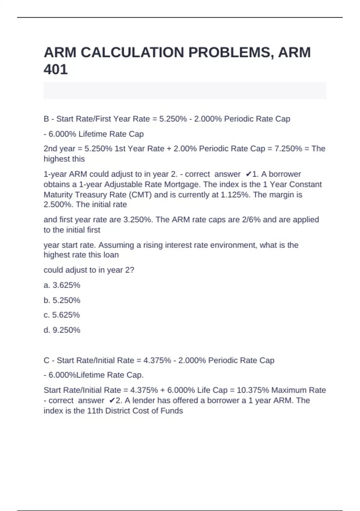 - correct answer ✔2. A lender has offered a borrower a 1 year ARM. The