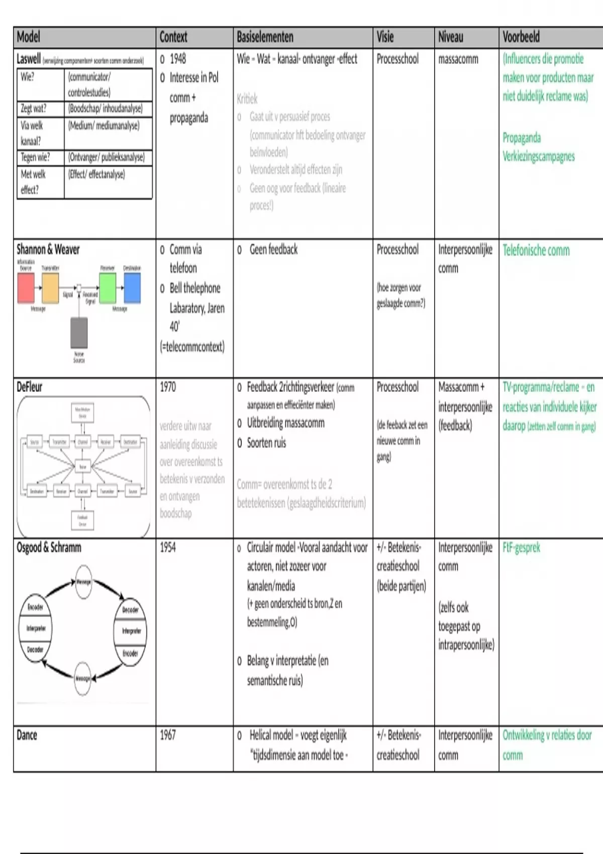 Samenvatting Communicatiemodellen - 16/20! - communicatiewetenschap (1100FSWCOM)