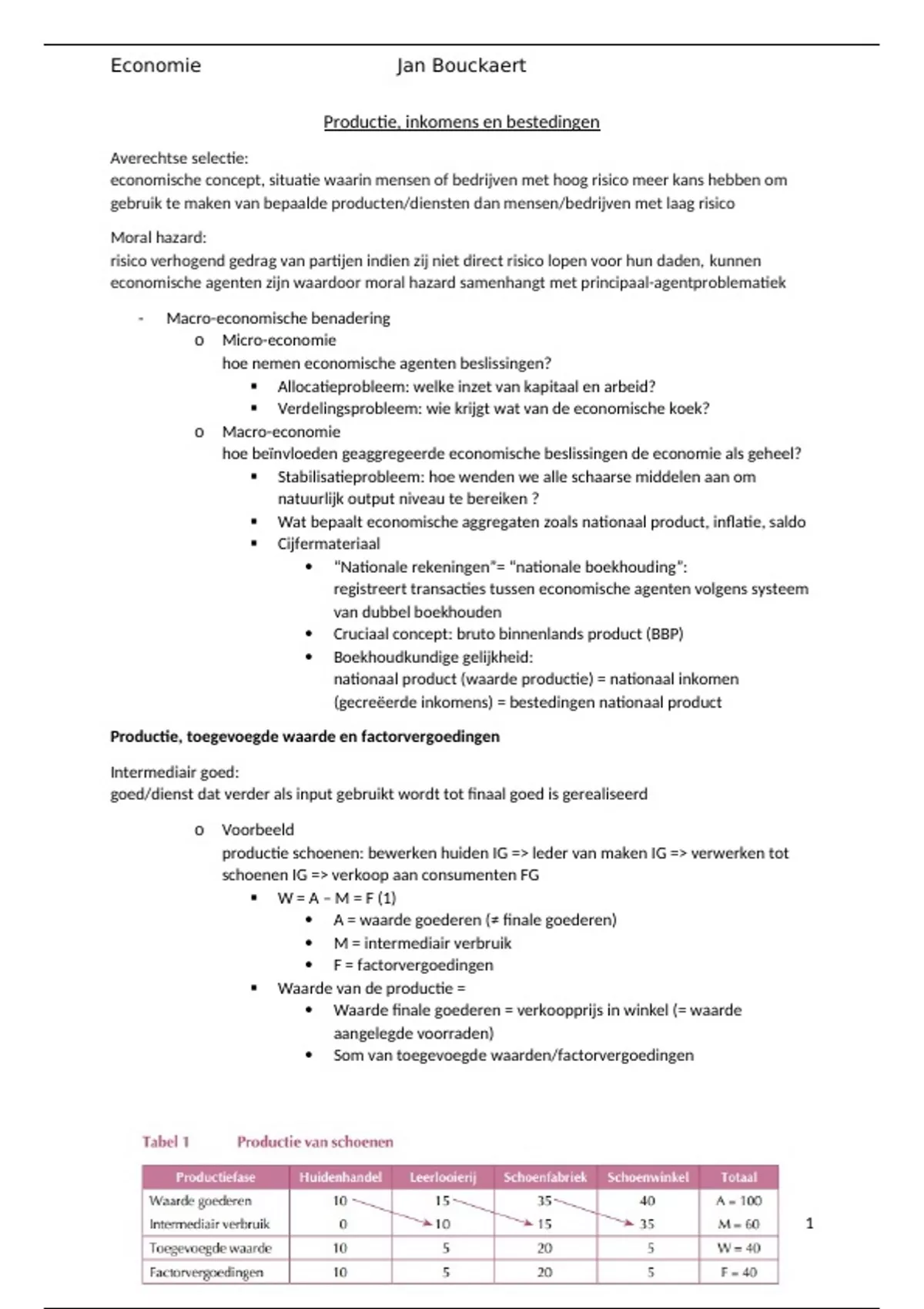 Alle hoofdstukken horen samen voor een samenvatting van het hele vak algemen economie gegeven door professor Jan Bouckaert in het 1ste jaar van de bachelors HI(B) en tew
