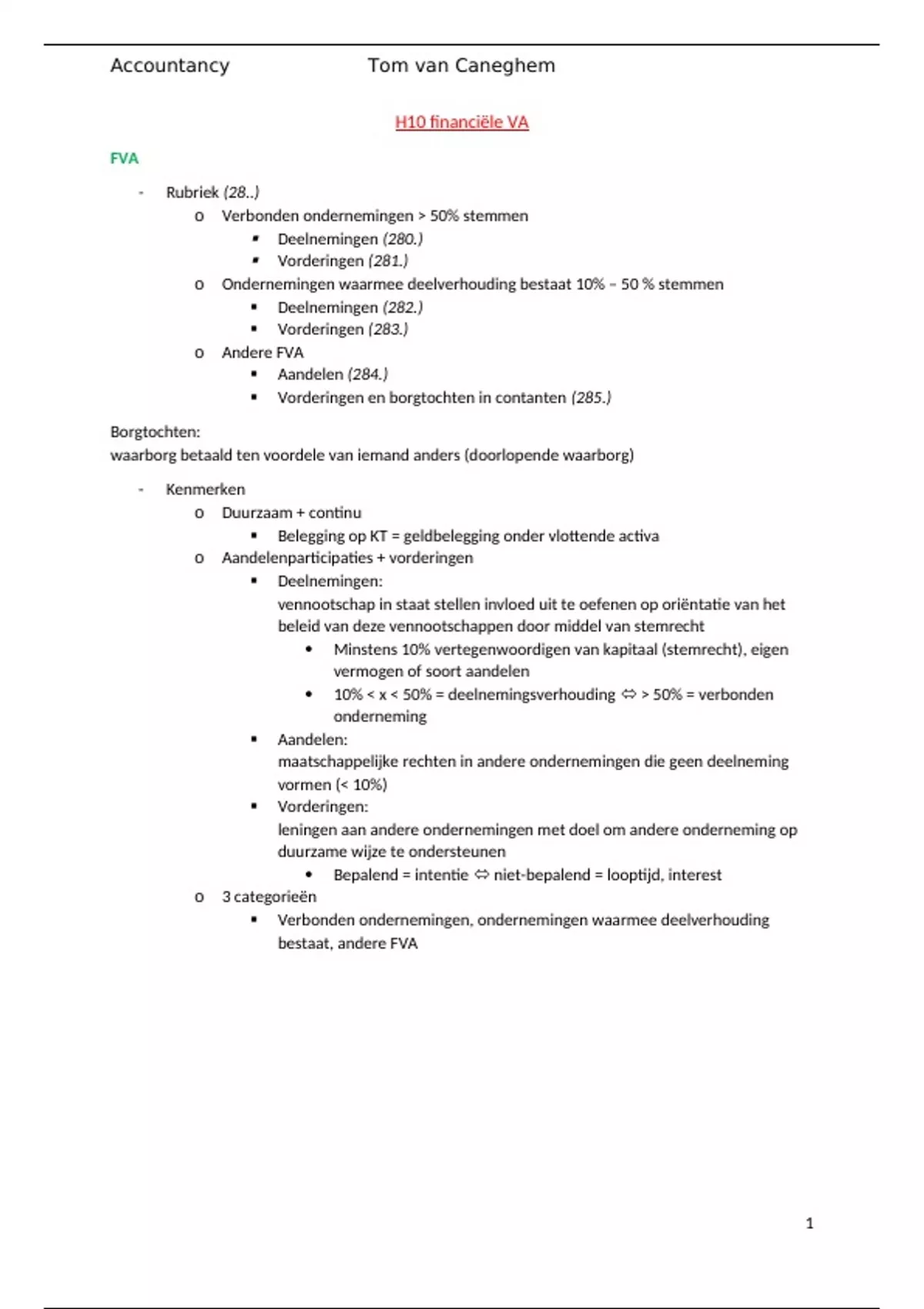 H10 financiële VA