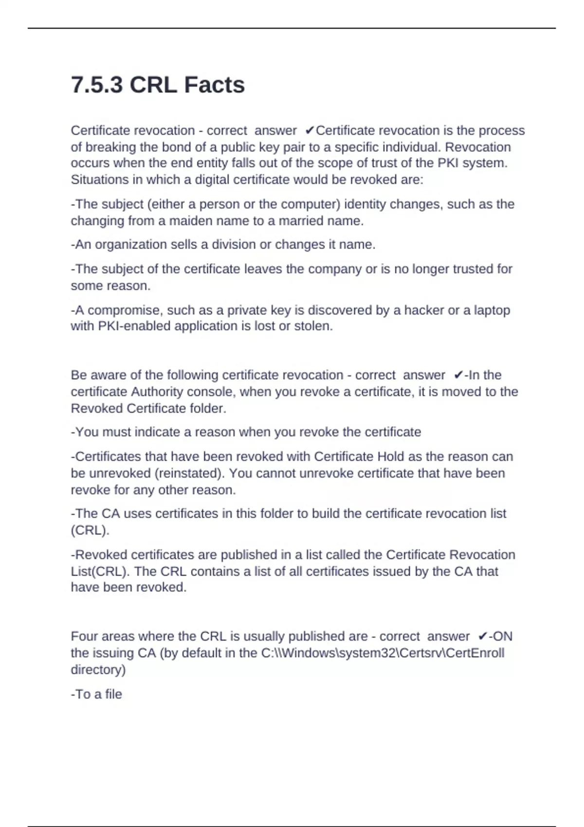 Be aware of the following certificate revocation - correct answer ✔-In the