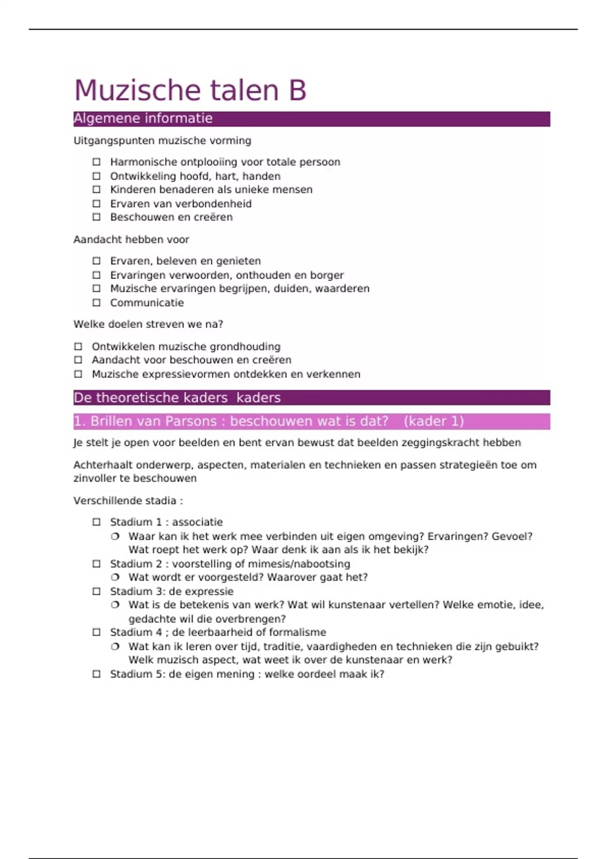 Uitgangspunten muzische vorming