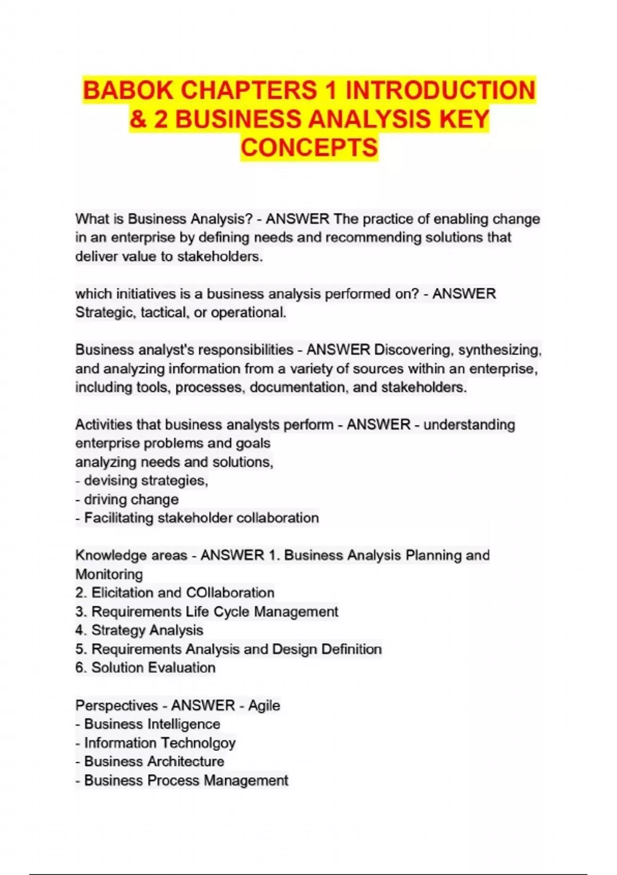 BABOK CHAPTERS 1 INTRODUCTION & 2 BUSINESS ANALYSIS KEY CONCEPTS