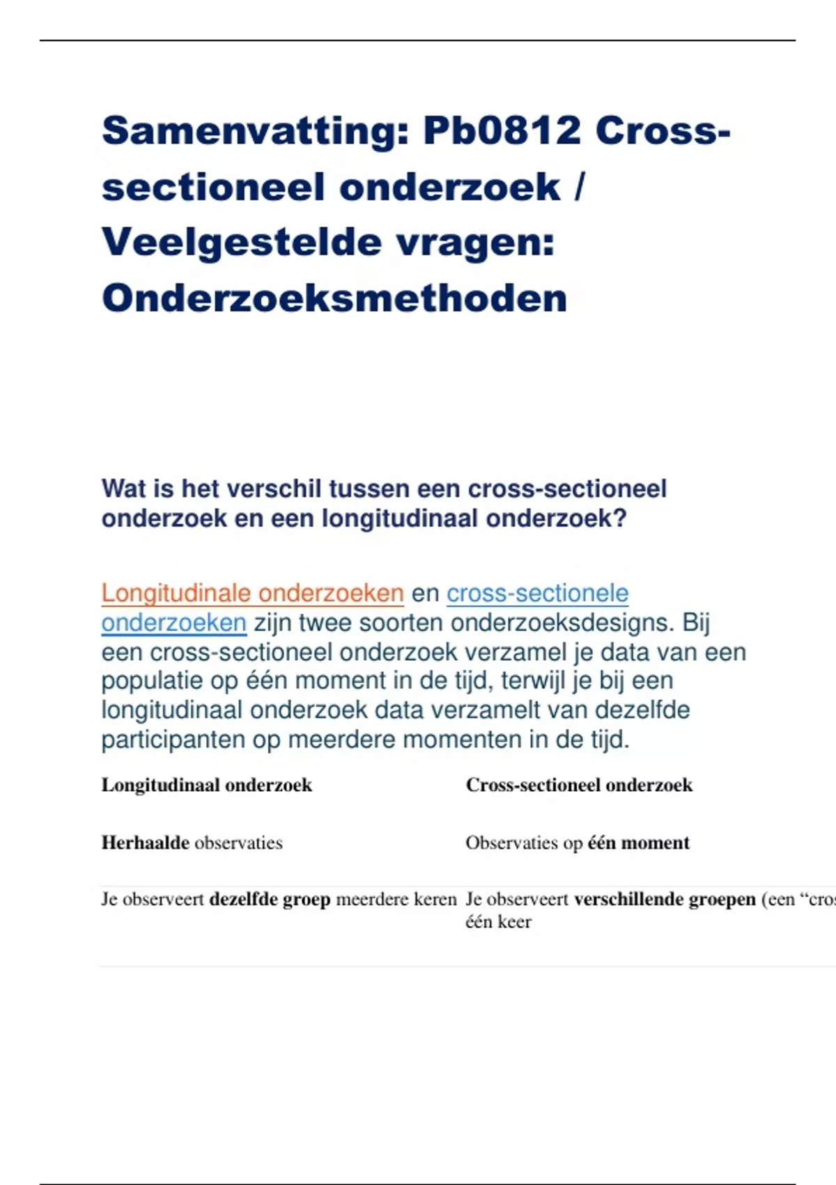 Longitudinaal onderzoek Cross-sectioneel onderzoek