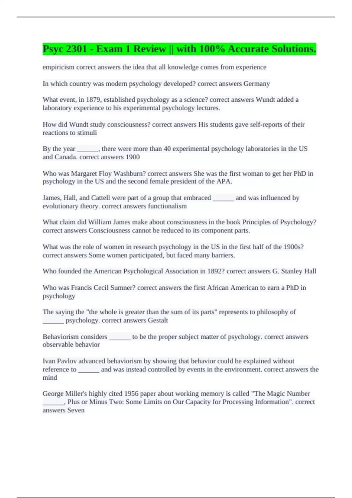 What event, in 1879, established psychology as a science? correct answers Wundt added a