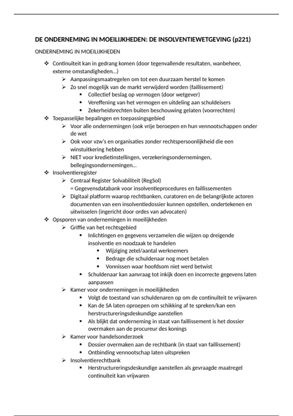 DE ONDERNEMING IN MOEILIJKHEDEN: DE INSOLVENTIEWETGEVING (p221)