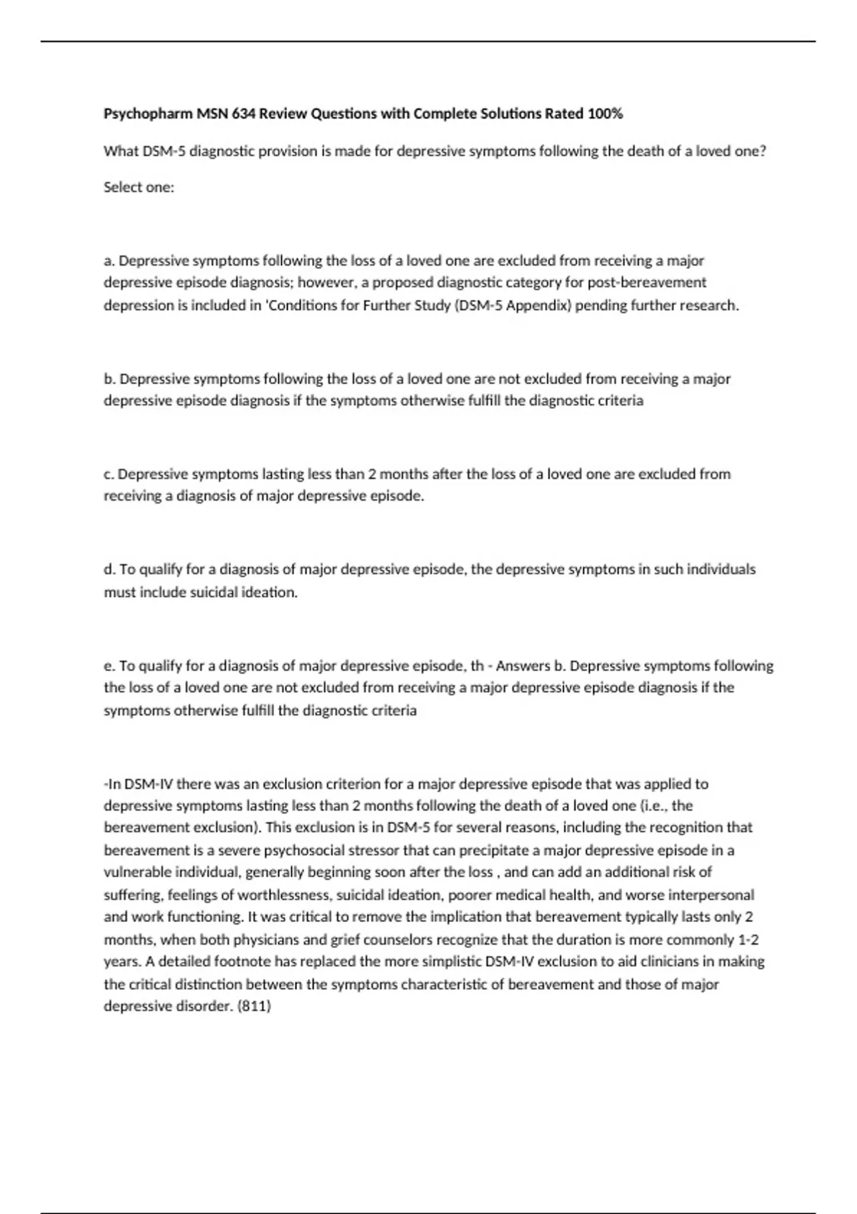 e. To qualify for a diagnosis of major depressive episode, th - Answers b. Depressive symptoms following