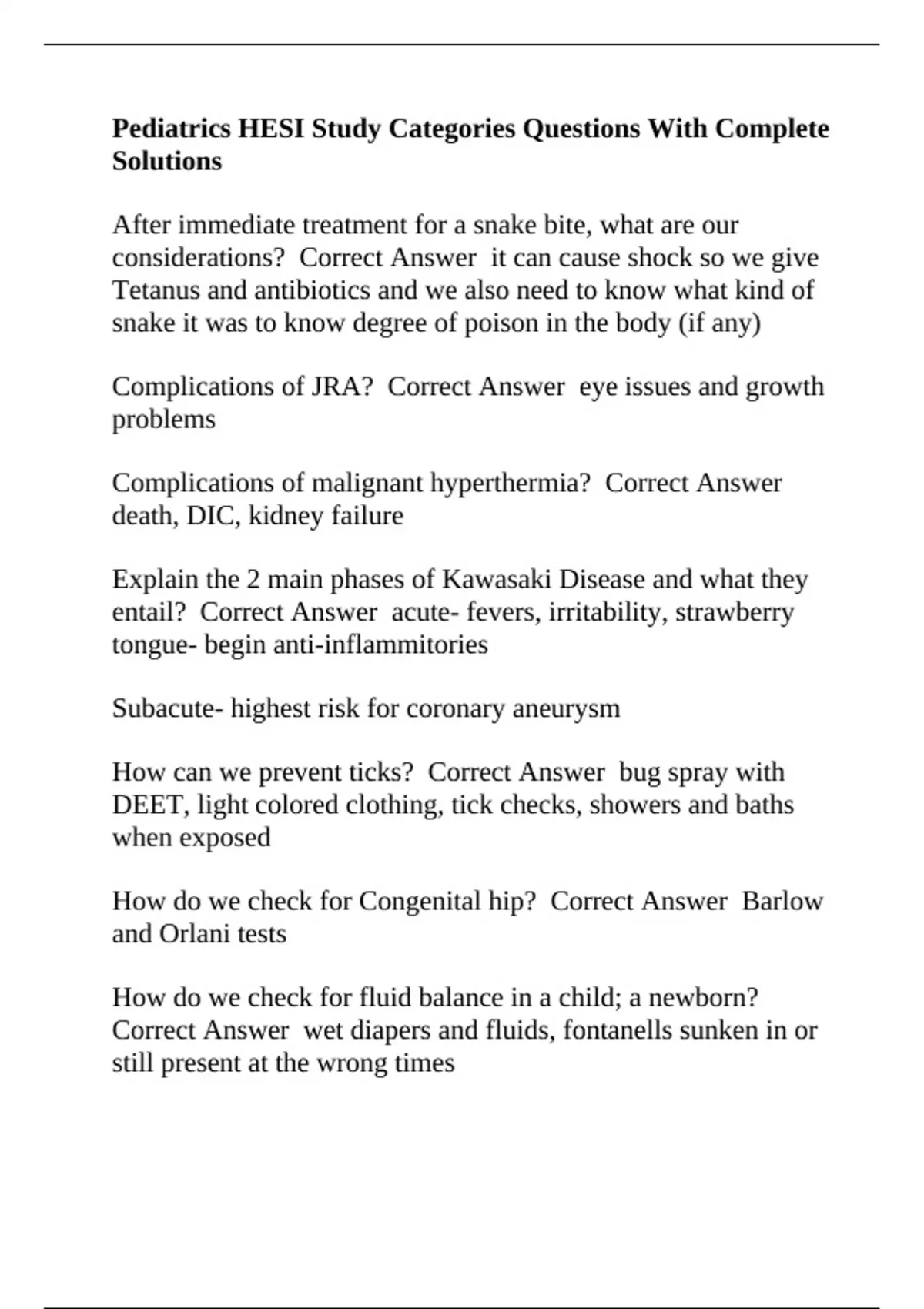 Pediatrics HESI Study Categories Questions With Complete Solutions