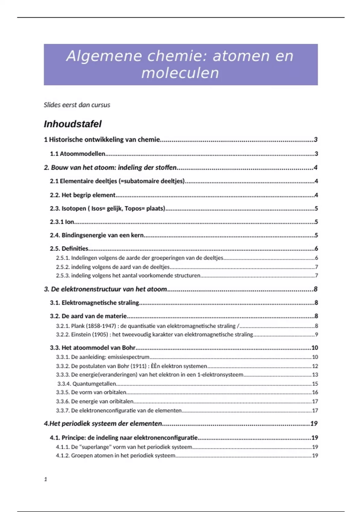 Samenvatting algemene chemie - atomen en molecule periode 1 1BLC kdg