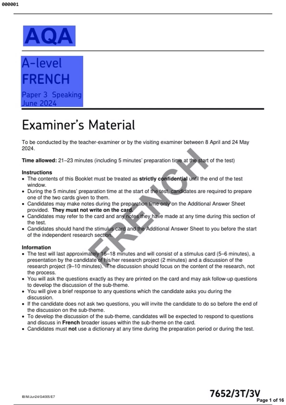 • The contents of this Booklet must be treated as strictly confidential until the end of the test