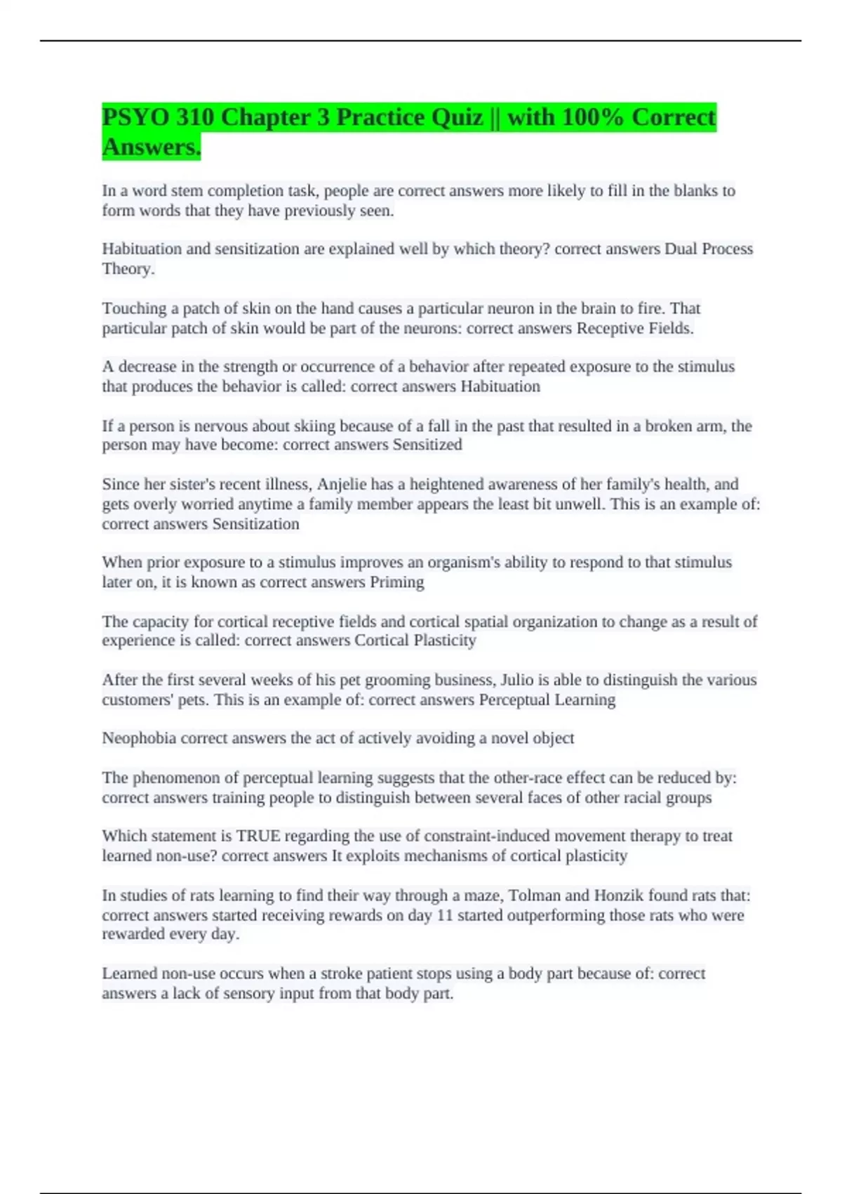 correct answers Sensitization