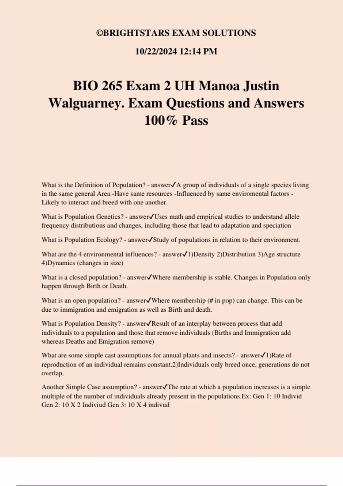 What is Population Ecology? - answer✔Study of populations in relation to their environment.